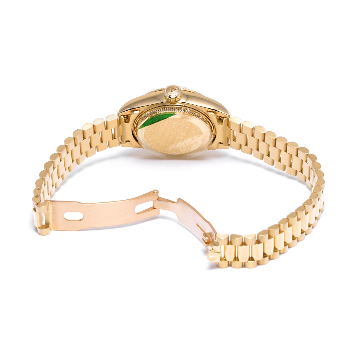 それから四半世紀の歳月を経て進化したこの世代のレディ デイトジャストの中でも、このゴールドモデルはもちろん特別な存在であり、最高峰の証であるプレジデントブレスレットがフィットされているほか、様々なジュエリーピースのベースモデルとして多く用いられています。 -