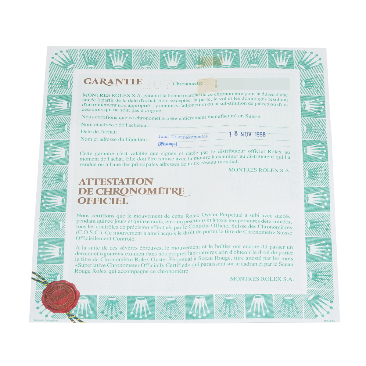 - メーカー保証書( 1998年11月海外購入) / タグ