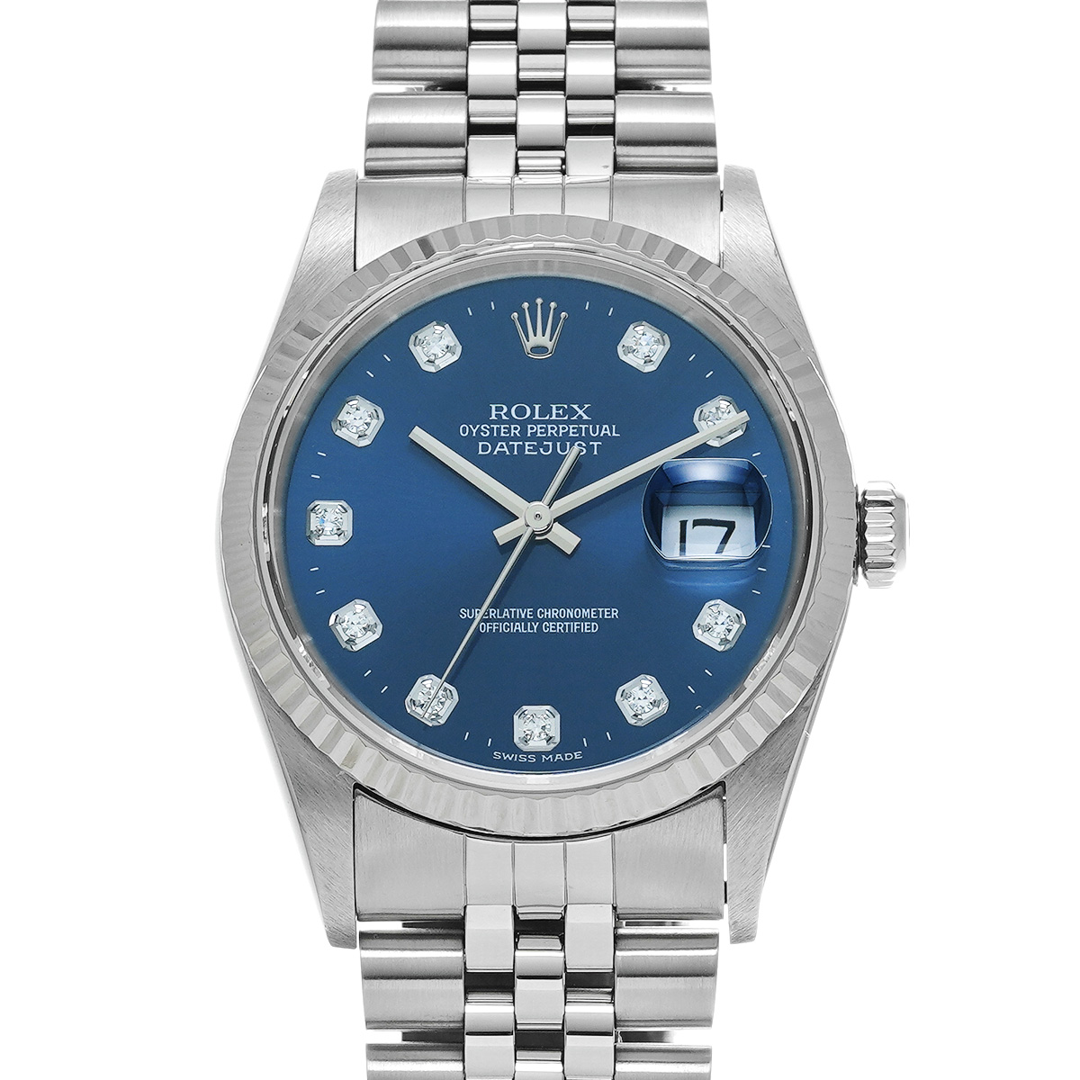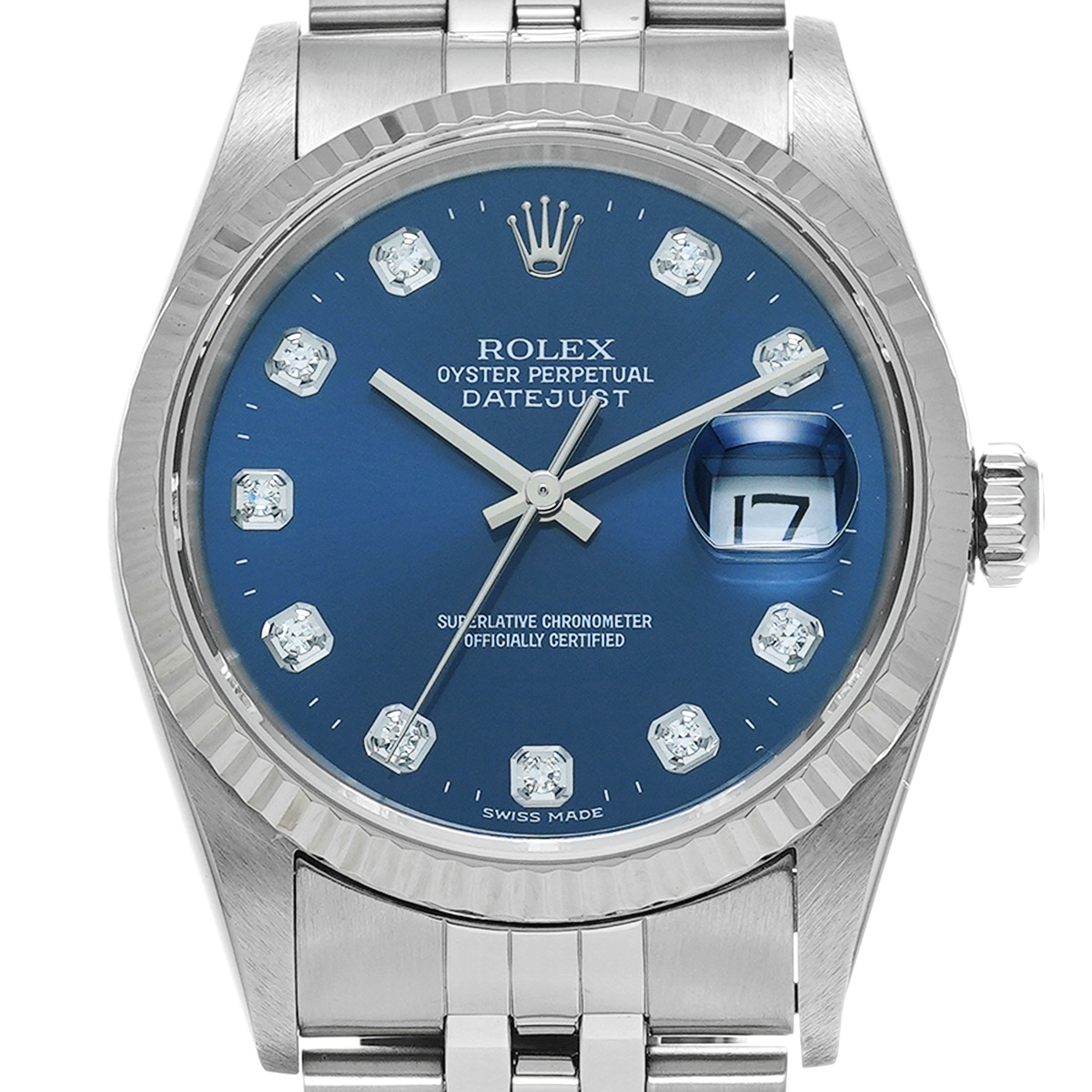 ロレックス デイトジャスト 16234G ブルー/ダイヤモンド メンズ 時計 【中古】【wristwatch】