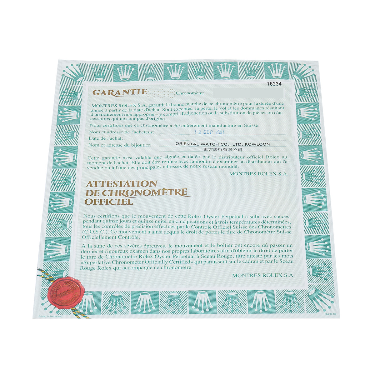 - メーカー保証書( 2001年9月海外購入) / タグ