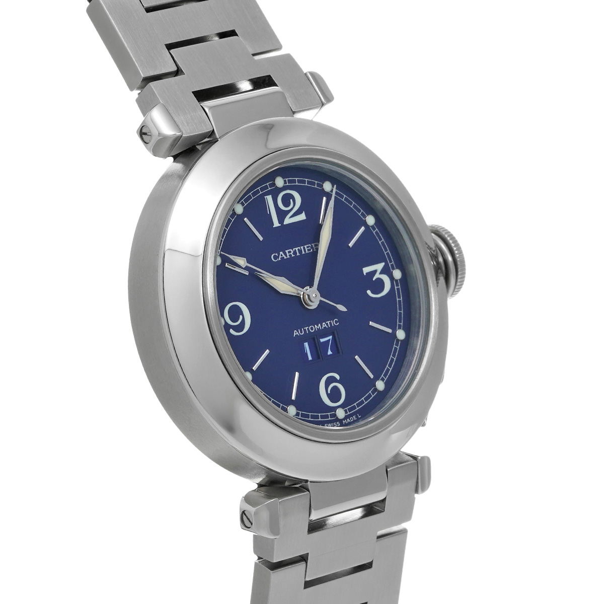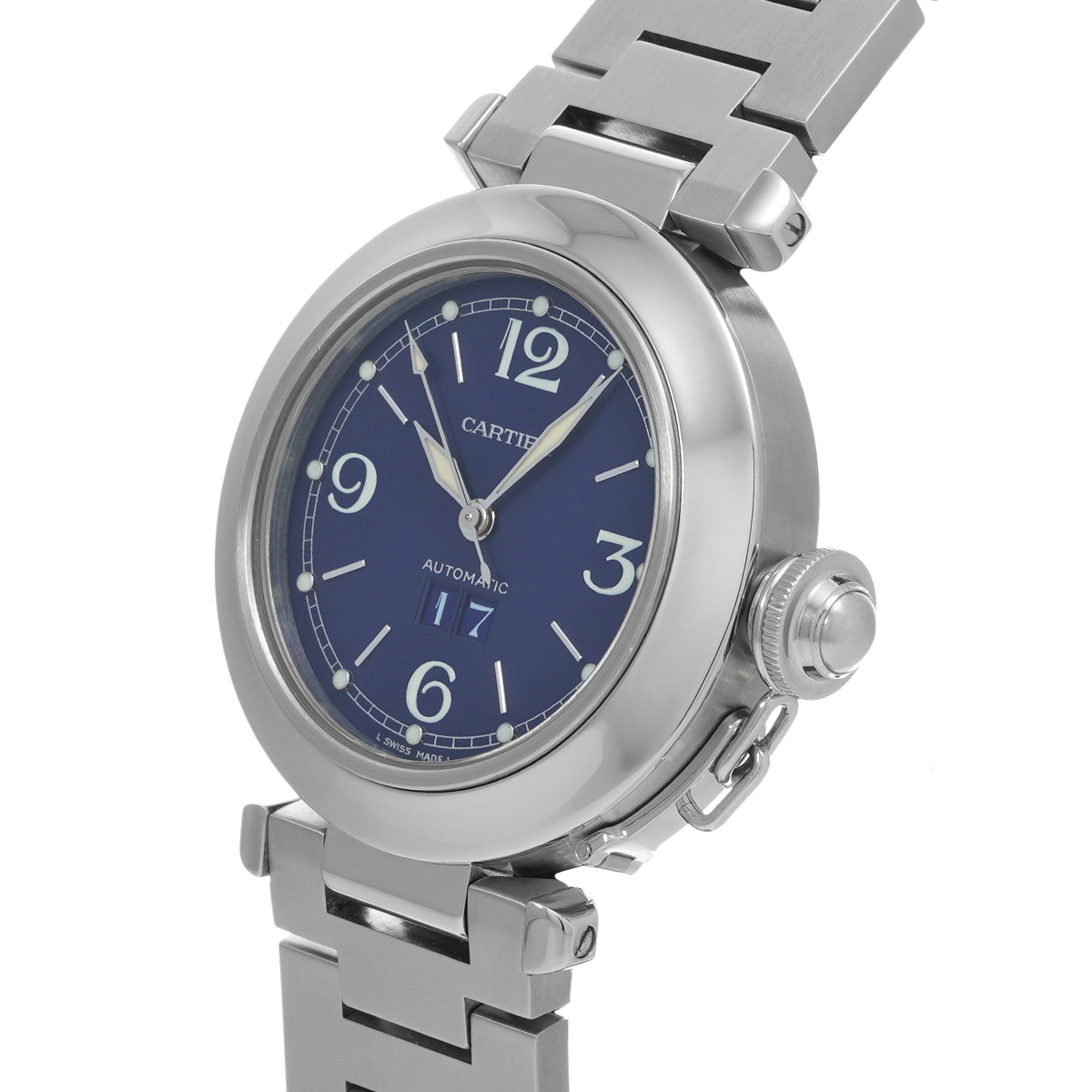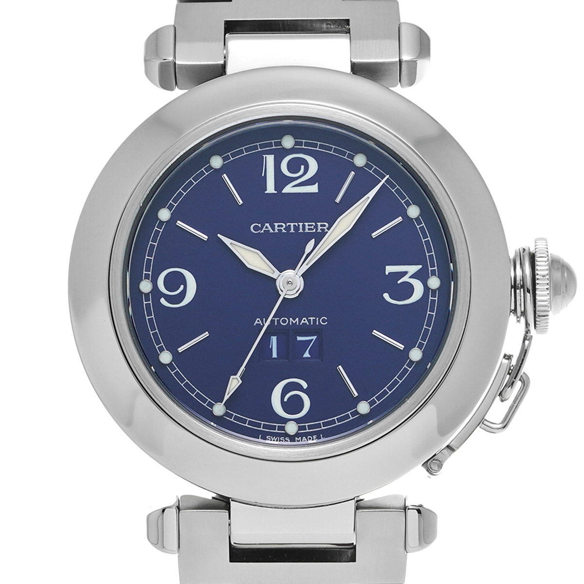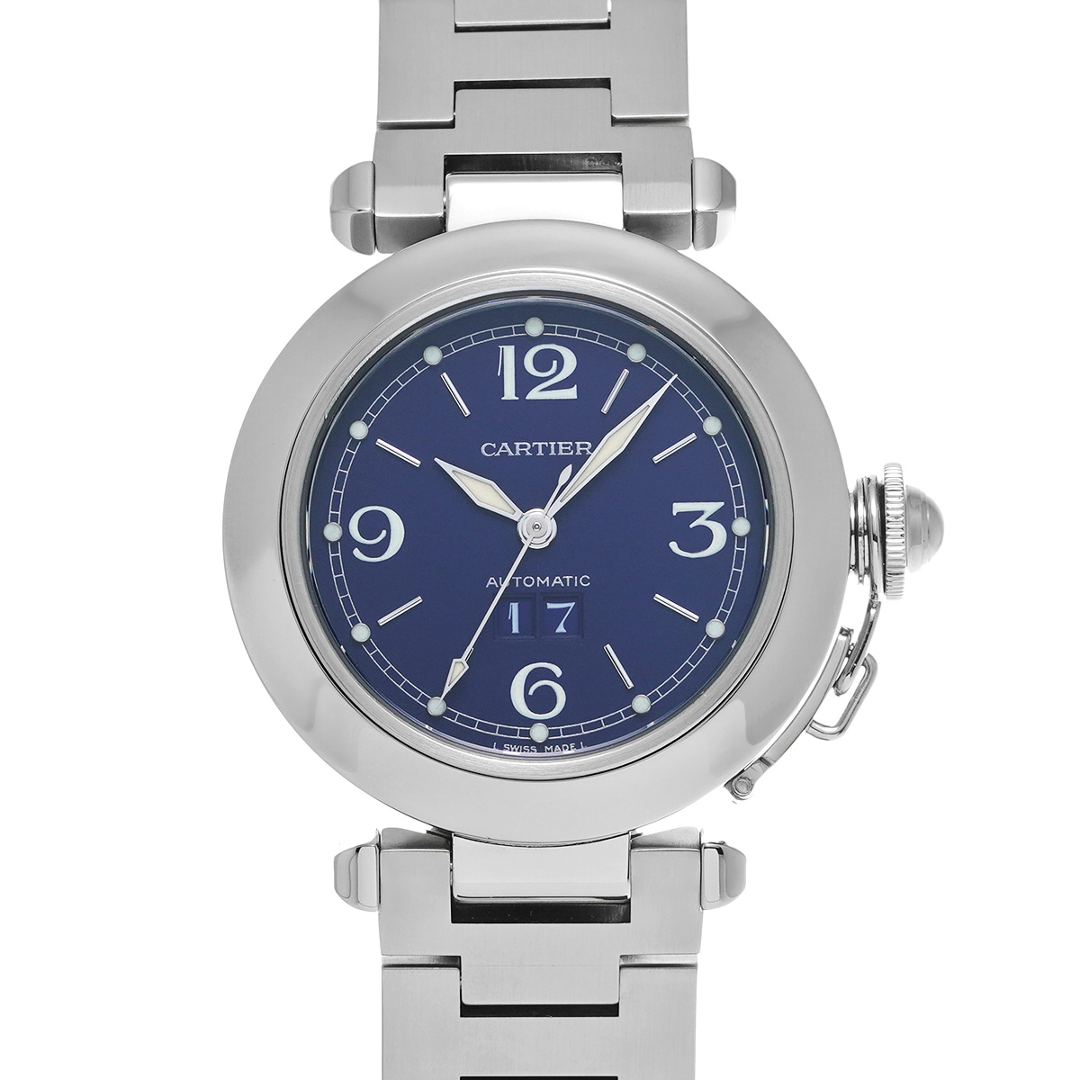 カルティエ パシャC ビッグデイト W31047M7 ブルー ユニセックス 時計 【中古】【wristwatch】
