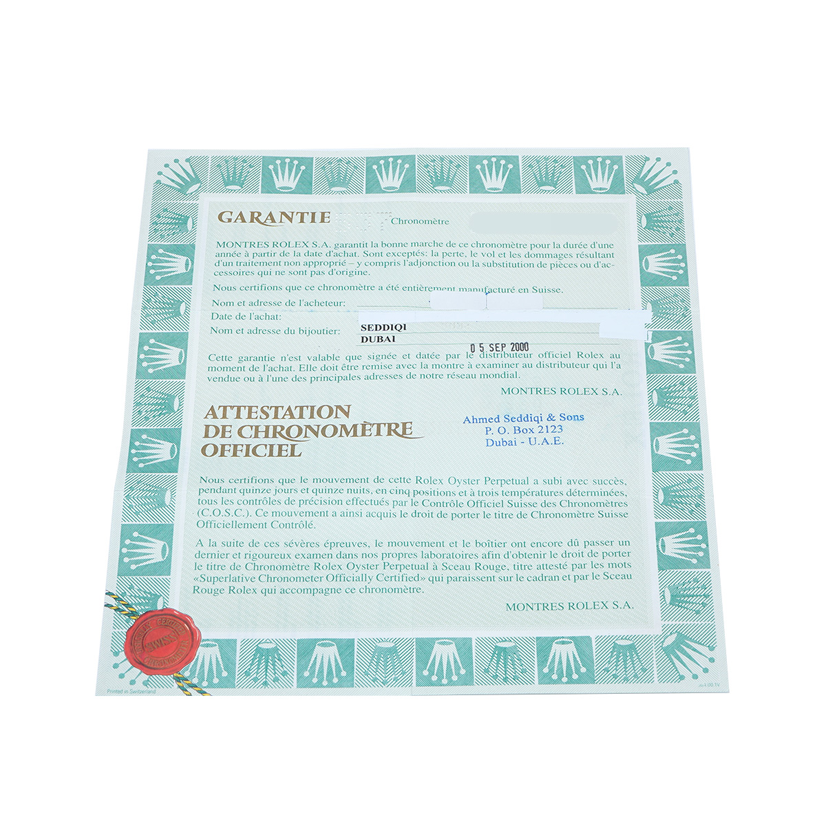- メーカー保証書( 2000年9月海外購入) 内箱 タグ