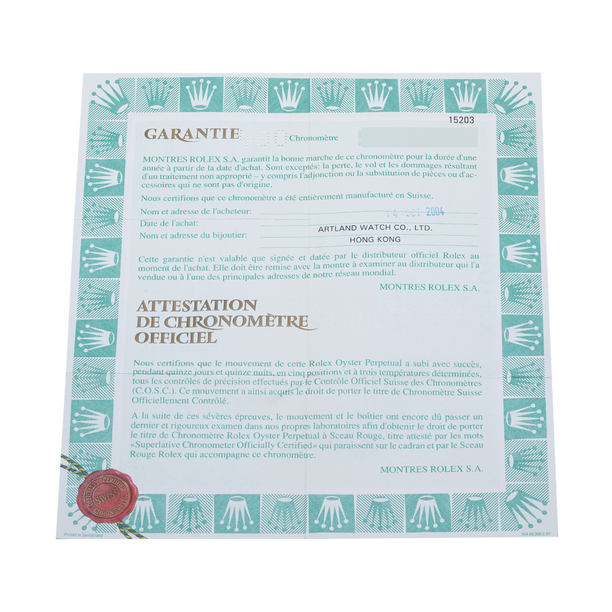 - メーカー保証書( 2004年10月海外購入) 内箱