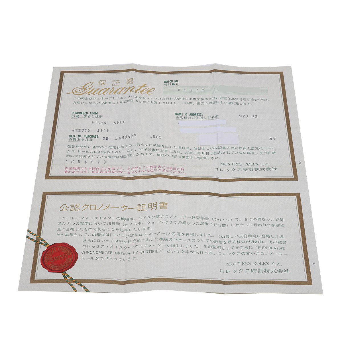 - 時計の当社保証
