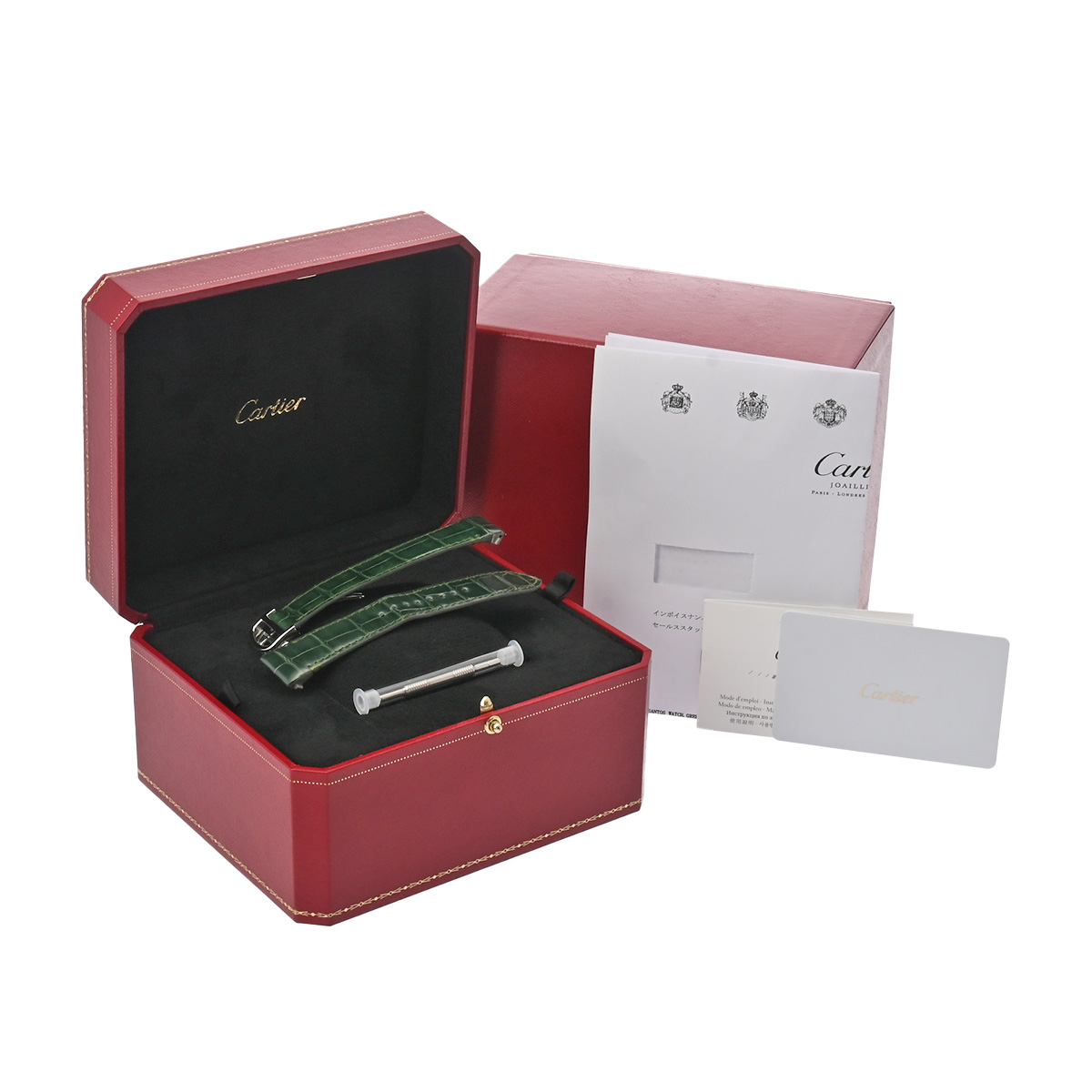 - メーカー保証書( 2024年10月購入) 替えベルト( アリゲーター/グリーン) メーカー箱 冊子 工具