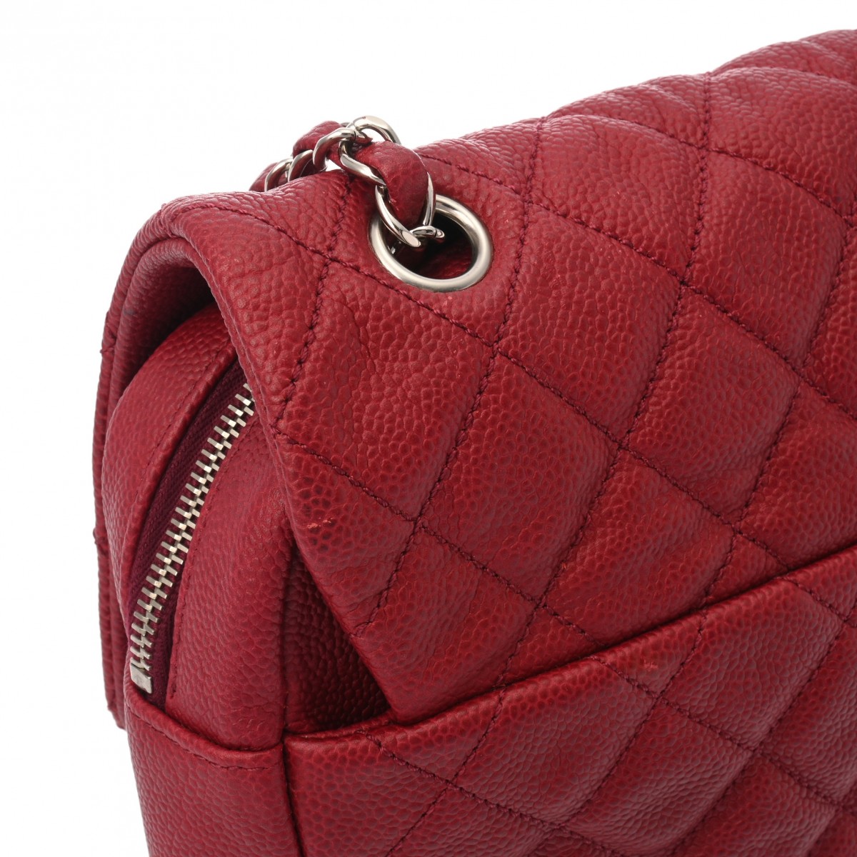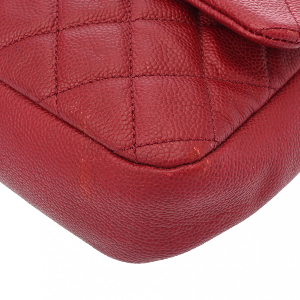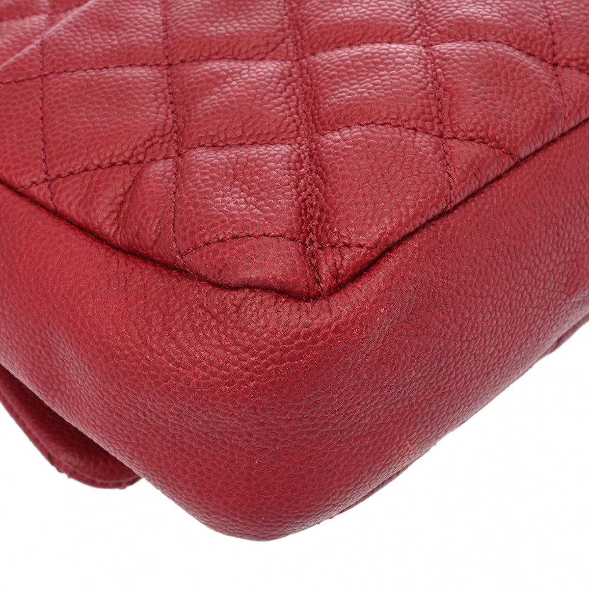 シャネル シングルフラップ チェーンショルダー レッド キャビアスキン レディース バッグ 【中古】【bag】