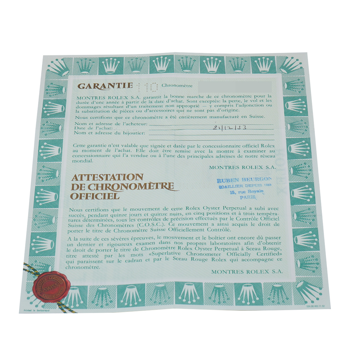 - メーカー保証書( 1993年12月海外購入) / タグ