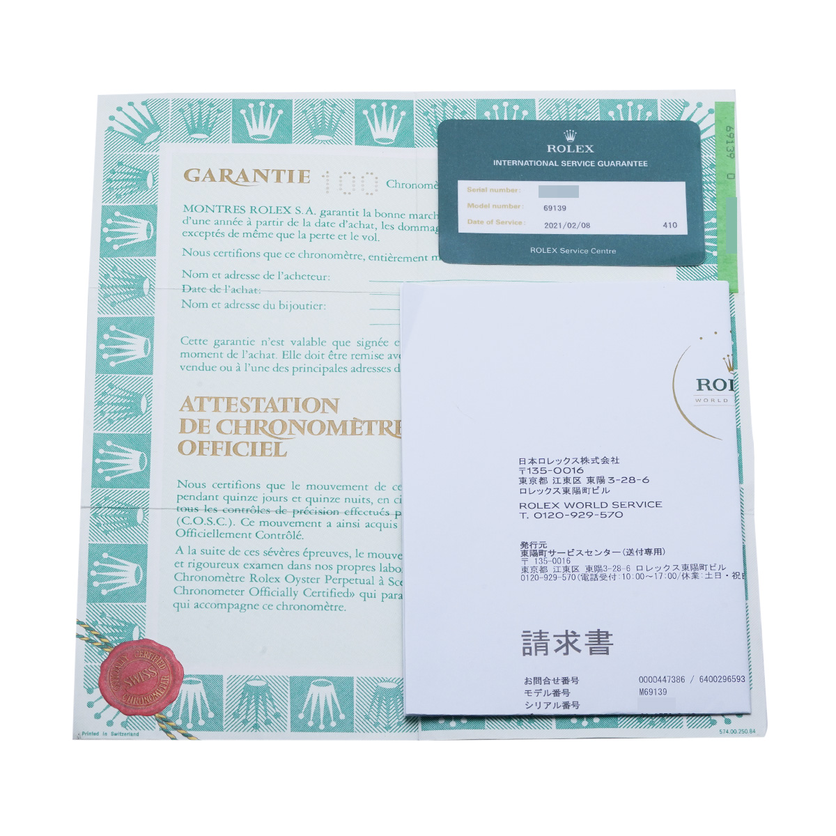 - メーカー保証書( 海外購入 購入日無記入) 国際サービス保証書(2021年2月オーバーホール) 請求書(2025年2月バネ棒交換他)