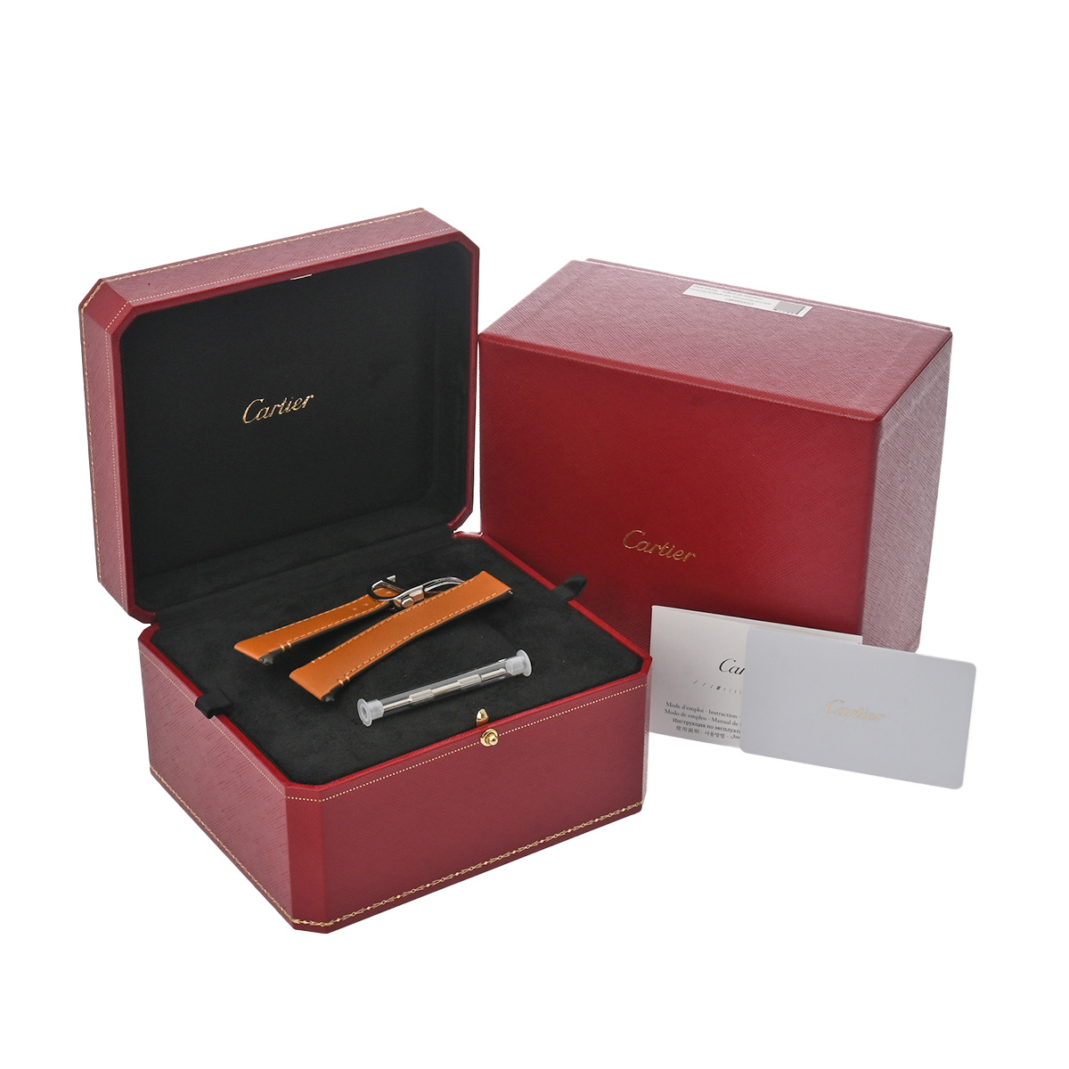 - メーカー保証書( 2023年8月購入) 替えベルト( カーフ/ブラウン) メーカー箱 冊子 工具 バックル