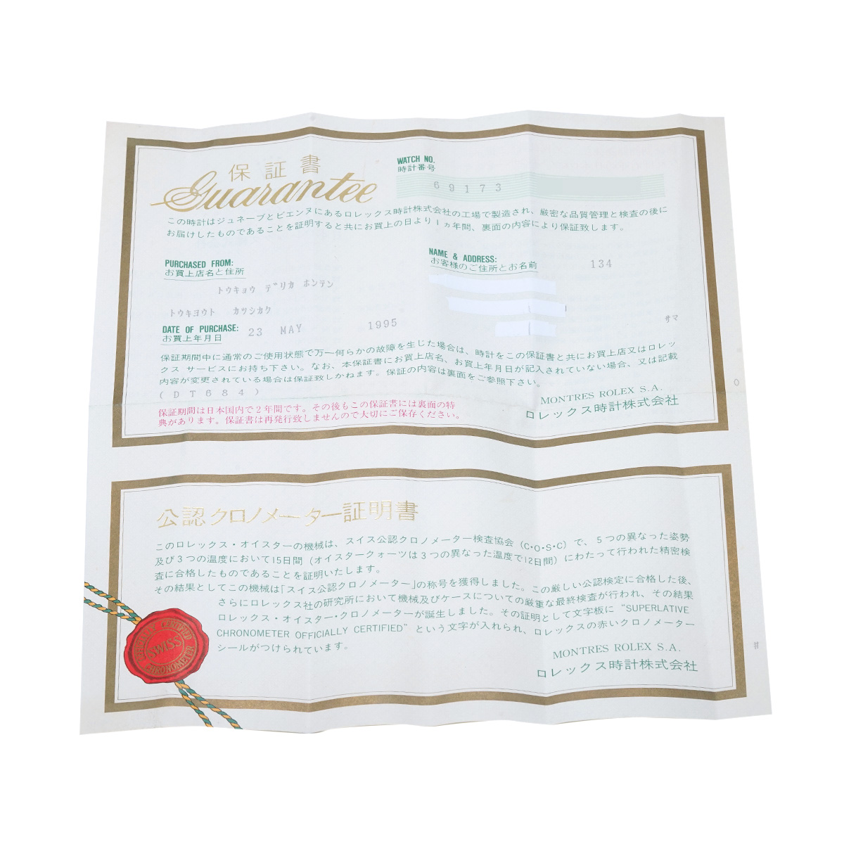 - メーカー保証書( 1995年5月国内購入) / 内箱(ダメージ)