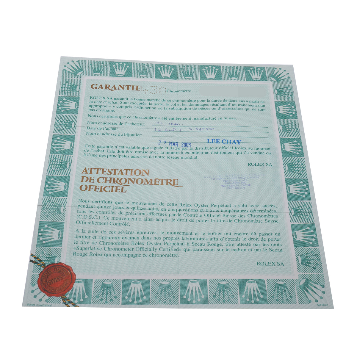 - メーカー保証書( 2003年3月海外購入) / タグ