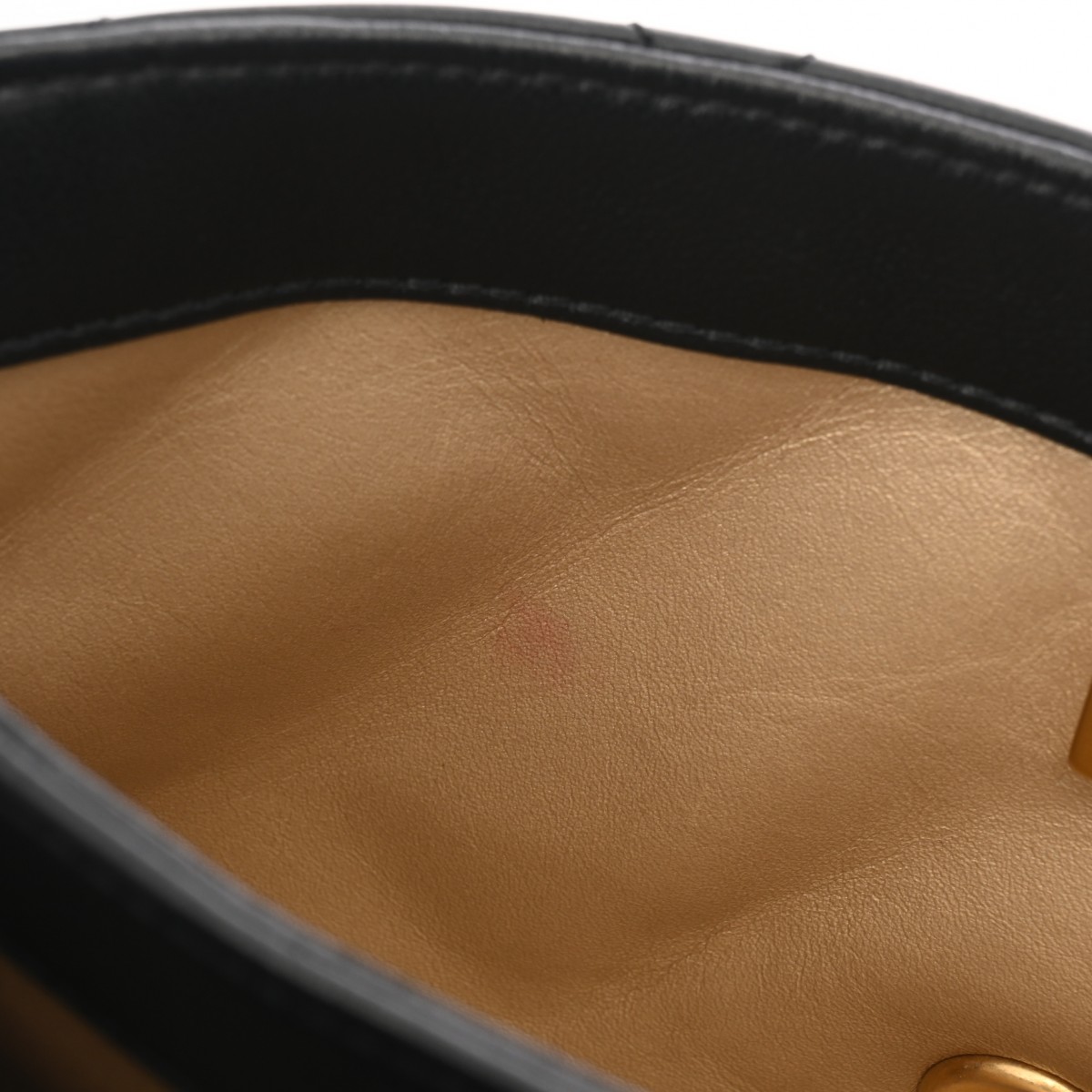内側 スレ、汚れ、シワ、金具にスリキズなど使用感がございます。