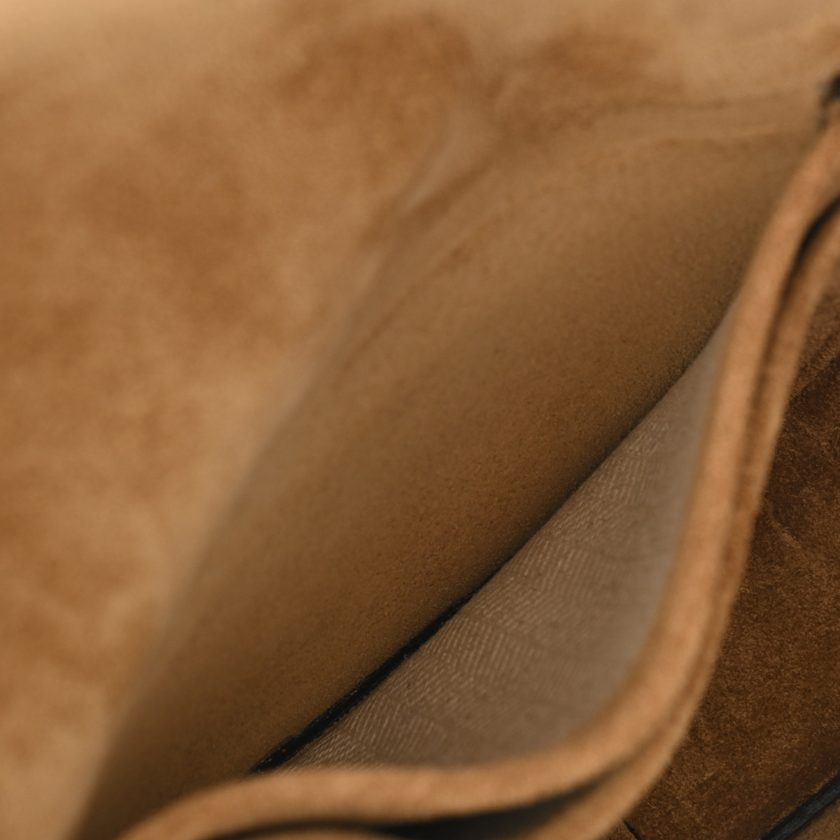 ポケットに広がりやヨレ、素材による毛羽立ち、フラップに押し跡やスレが若干ございます。