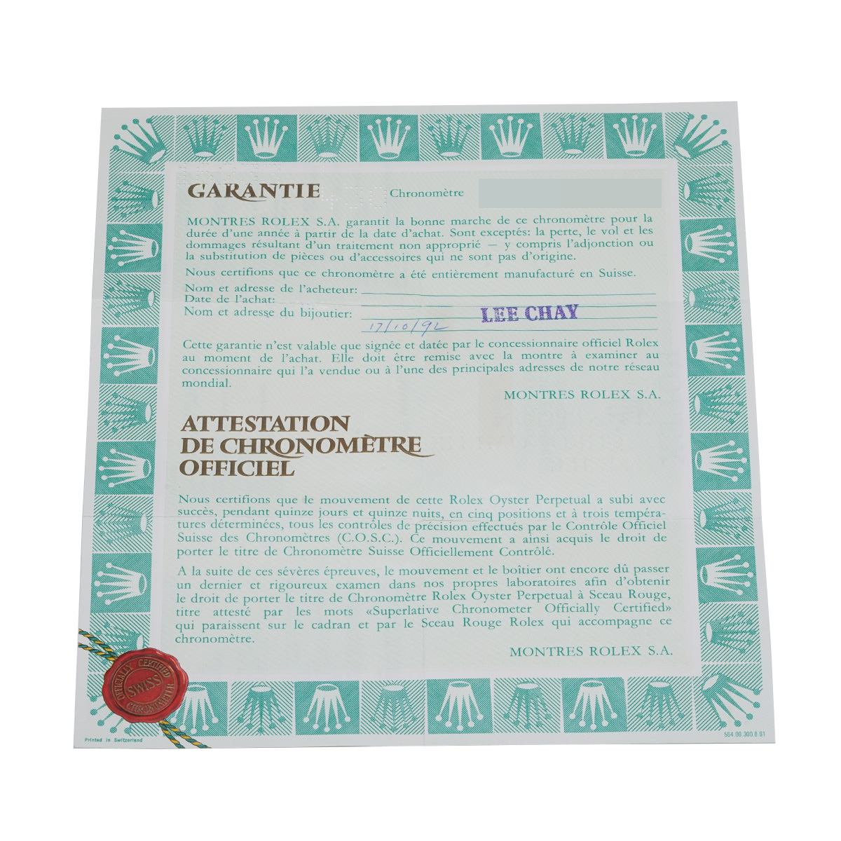 - メーカー保証書( 1992年10月海外購入)