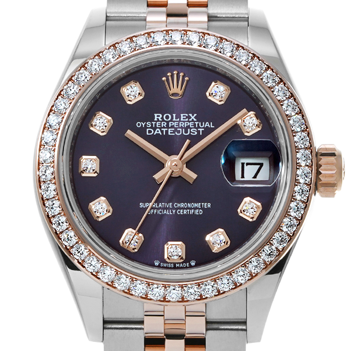 ロレックス レディ デイトジャスト 28 279381RBR オーベルジーヌ/ダイヤモンド レディース 時計 【中古】【wristwatch】