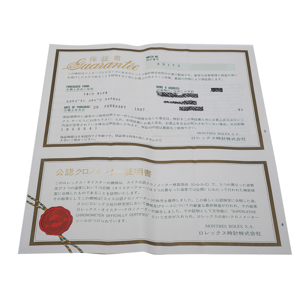 - メーカー保証書( 1997年2月国内購入)