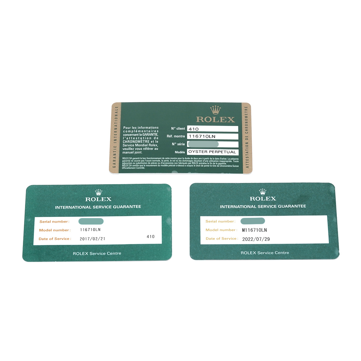 - メーカー保証書( 2013年5月国内購入) 国際サービス保証書(2017年2月/2022年7月オーバーホール)