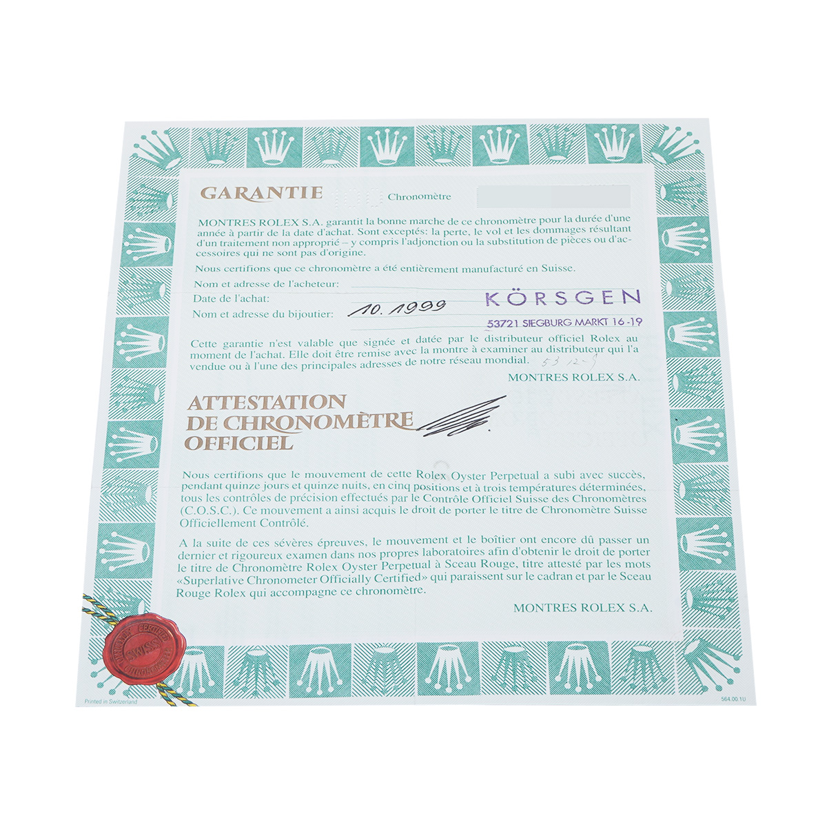 - メーカー保証書( 1999年10月海外購入) 内箱 タグ