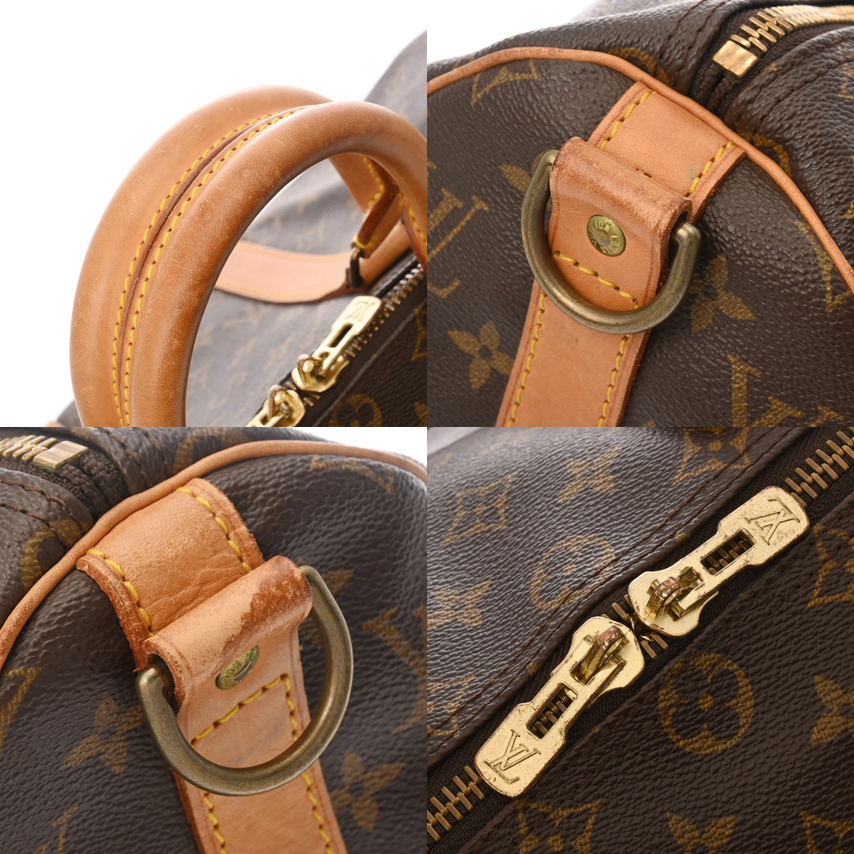 外側 つぶれ、たたみクセ、シワ、テカリ、付属品含めヌメ革にヤケやシミ、汚れやスレ、黒ずみ、ショルダーにクセや青錆の付着、金具に色ハゲや青錆、ファスナー開閉に若干固さなど使用感がございます。 内側 スレや毛羽立ち、汚れ、黒ずみ、ヌメ革にシミやヤケ、糸のホツレ、金具に変色や青錆の付着など使用感がございます。