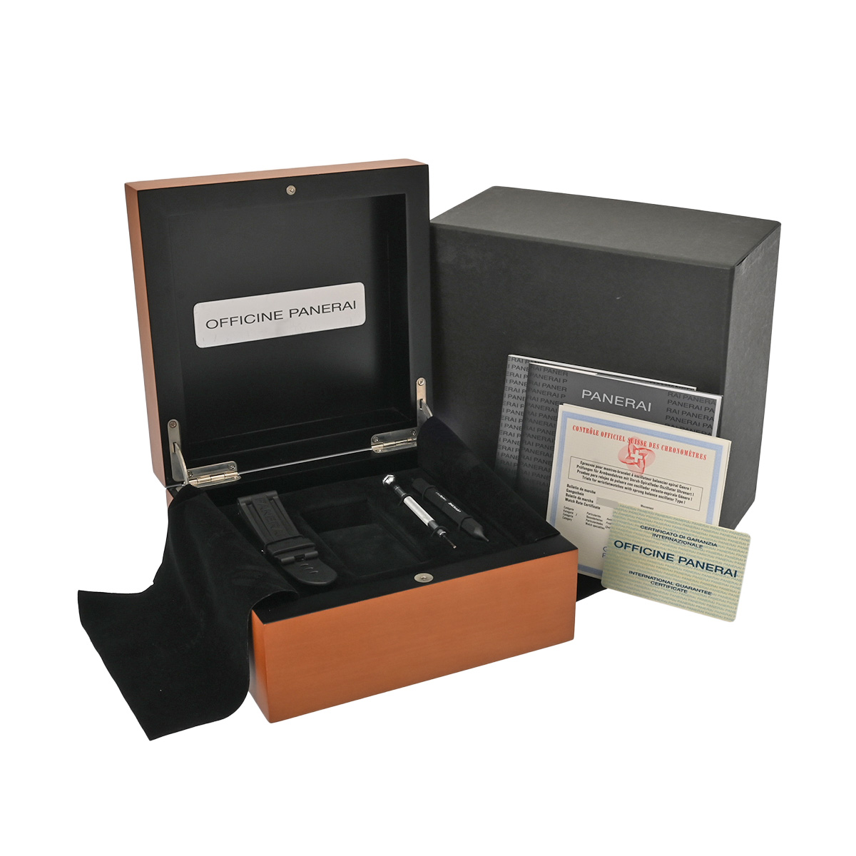 - メーカー保証書( 2009年6月国内購入) 替えベルト( ブラックラバーストラップ/使用感有/遊革欠損) メーカー箱 冊子 クロノメーター証明書 工具