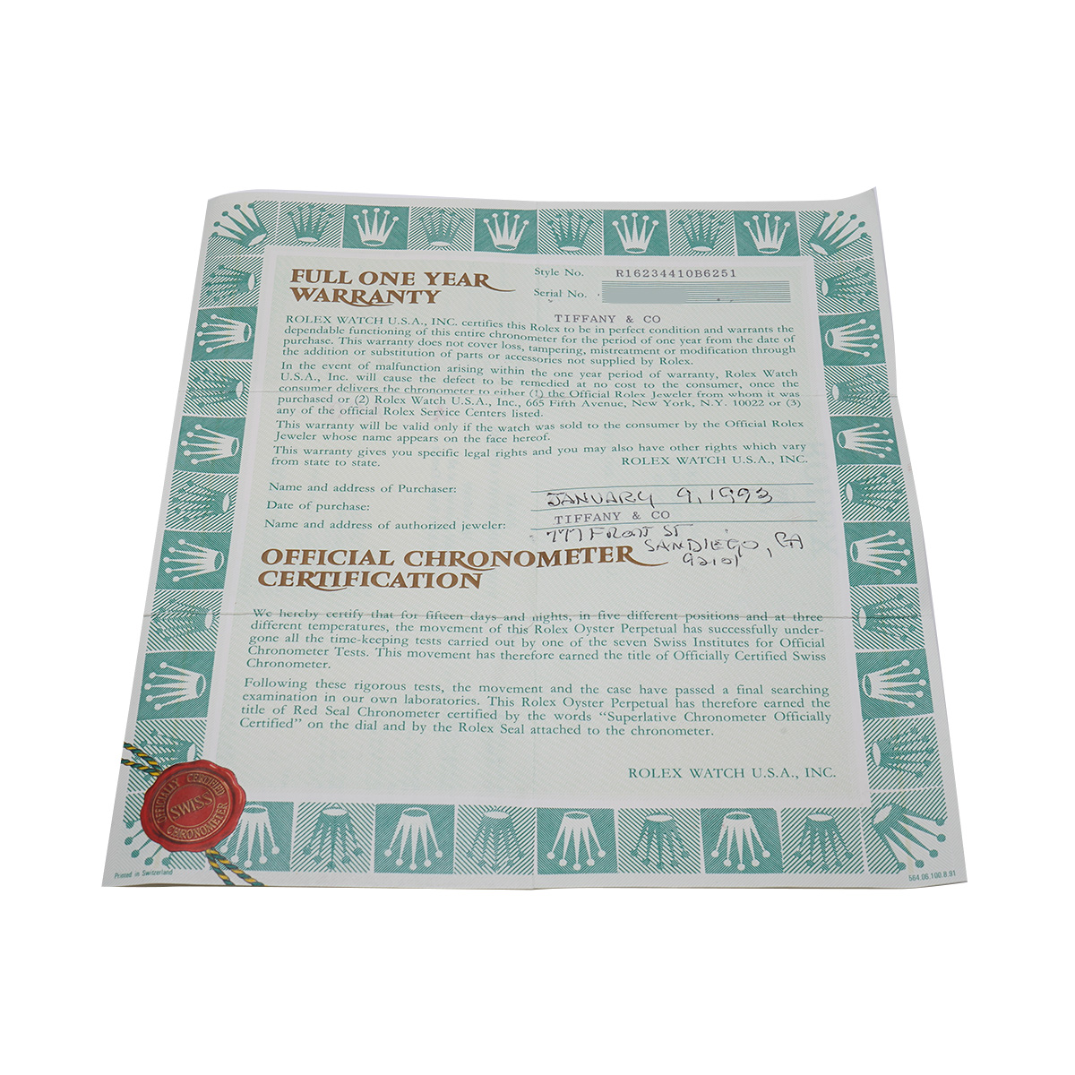 - メーカー保証書( 1993年1月海外購入)