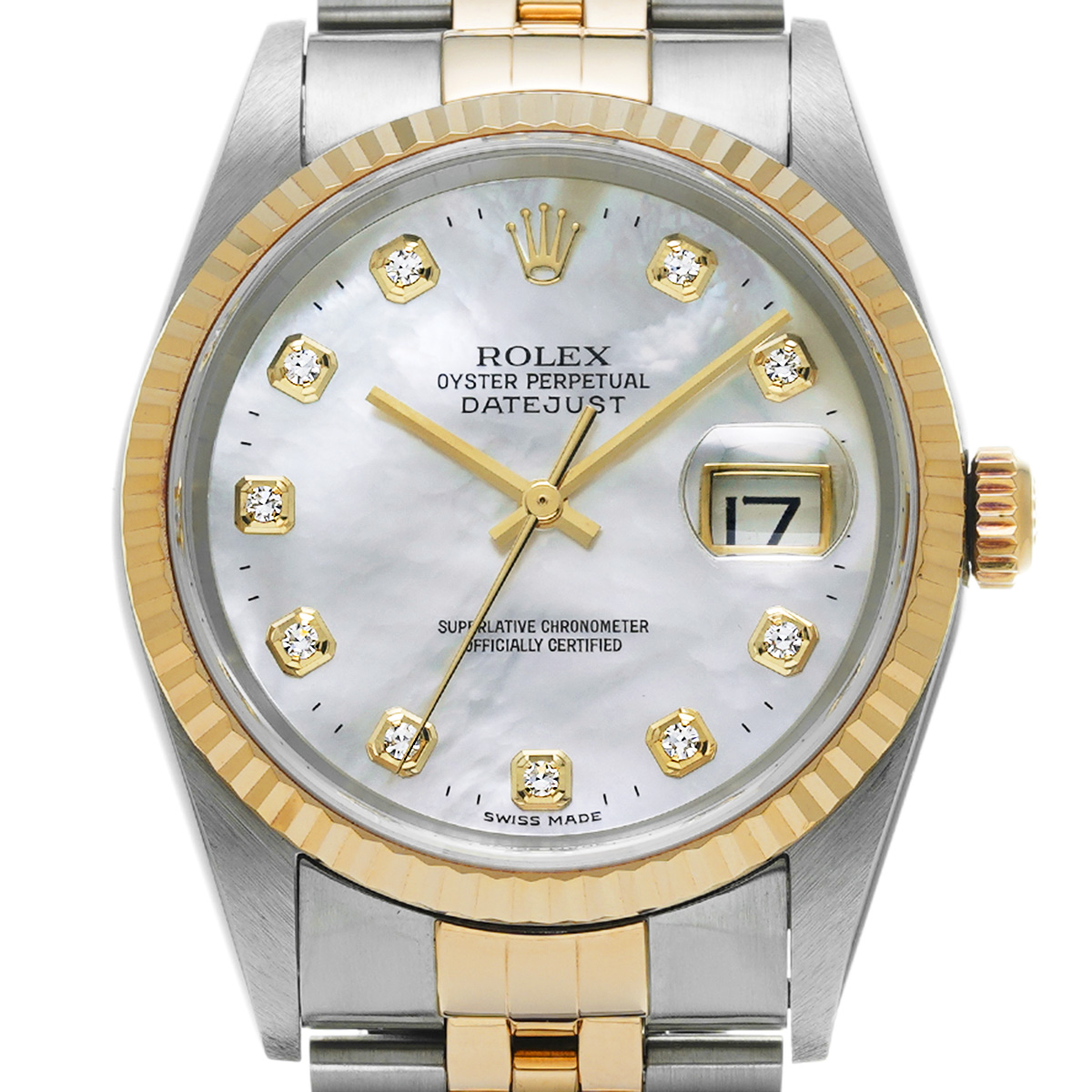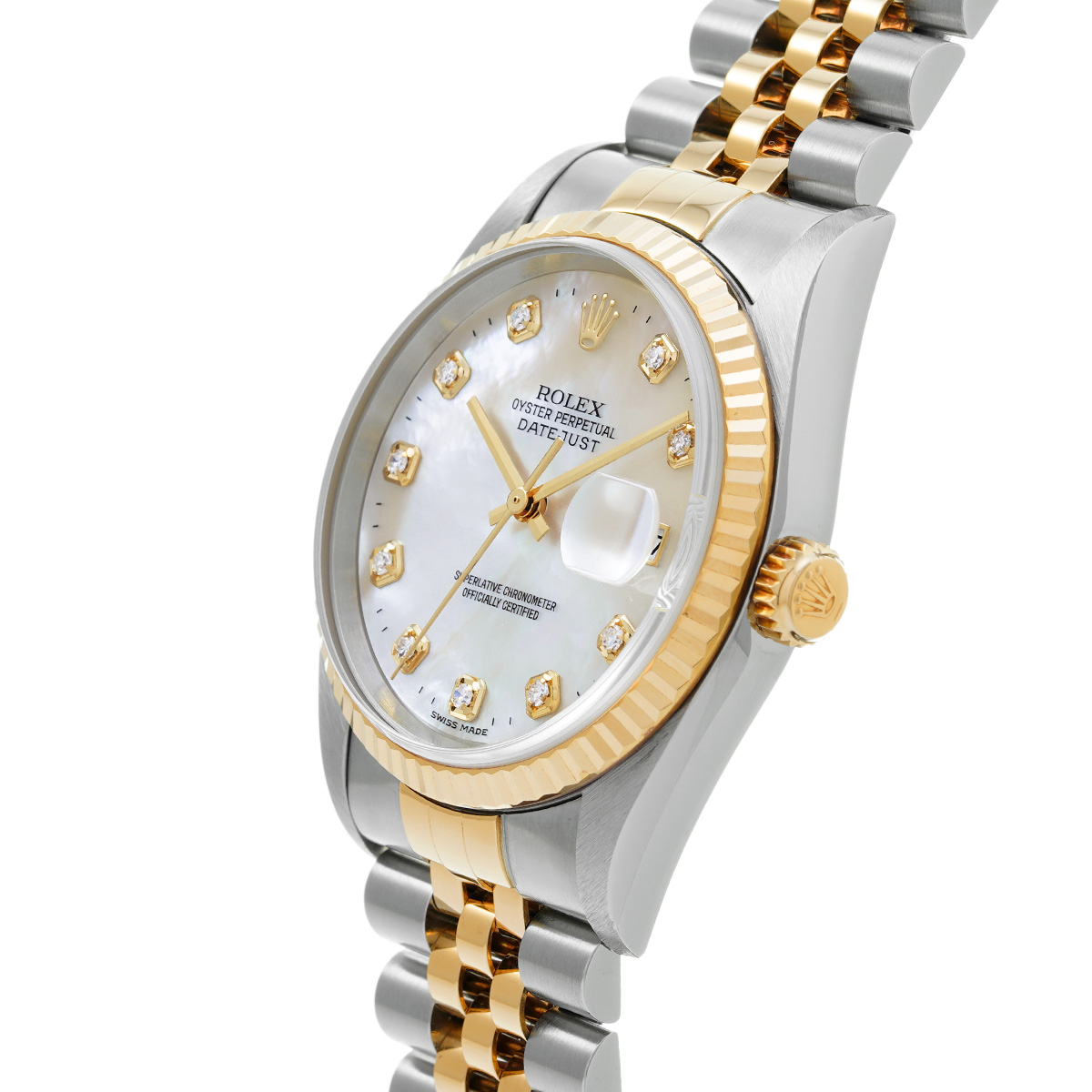 ロレックス デイトジャスト 16233NG ホワイトシェル/ダイヤモンド メンズ 時計 【中古】【wristwatch】