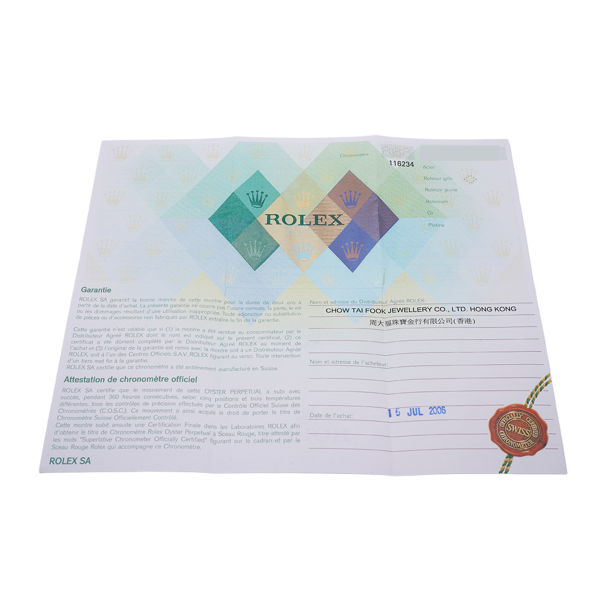 メーカー保証書( 2006年7月海外購入) / メーカー箱(ダメージ)/タグ