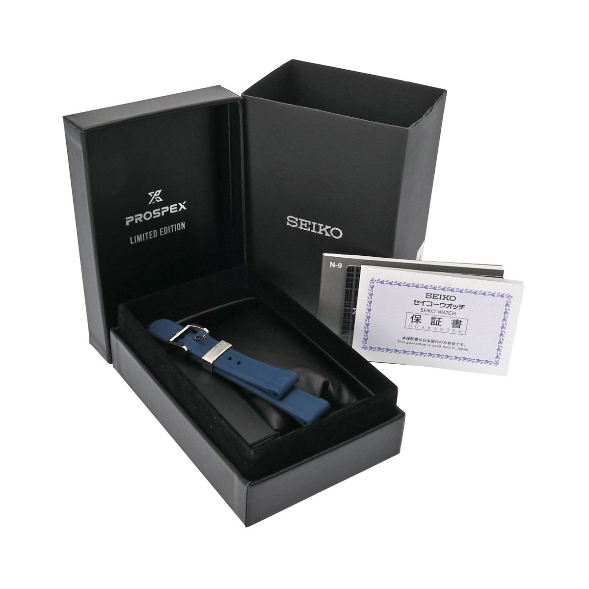 - メーカー保証書( 2022年6月国内購入) / 替えベルト( ラバー/ブルー(使用感有)) / メーカー箱(ダメージ)/冊子 / アストロンカード