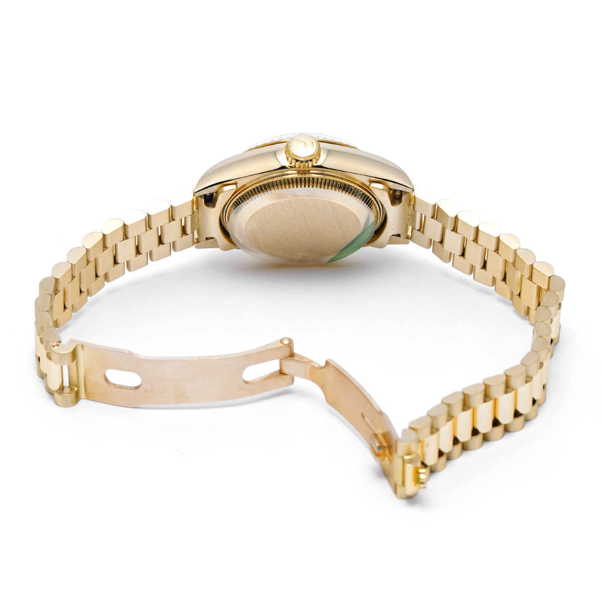 それから四半世紀の歳月を経て進化したこの世代のレディ デイトジャストの中でも、このゴールドモデルはもちろん特別な存在であり、最高峰の証であるプレジデントブレスレットがフィットされているほか、様々なジュエリーピースのベースモデルとして多く用いられています。 -