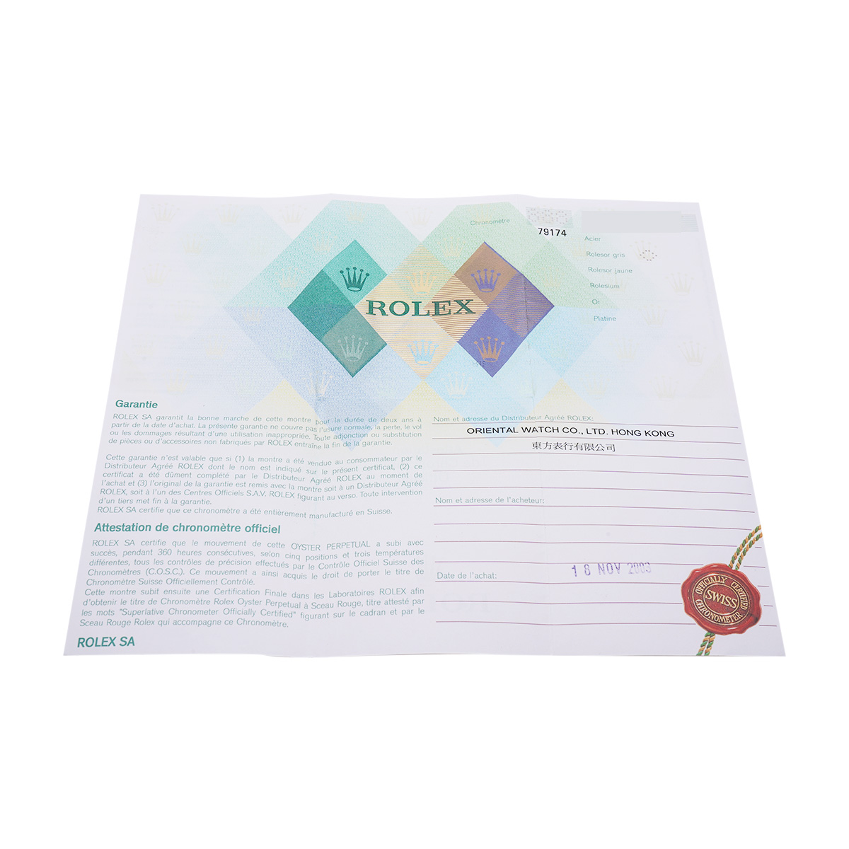 - メーカー保証書( 2003年11月海外購入) 内箱(劣化) タグ