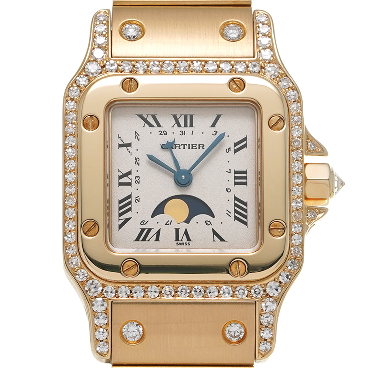 カルティエ サントスガルベ SM ムーンフェイズ 819903 アイボリー レディース 時計 【中古】【wristwatch】