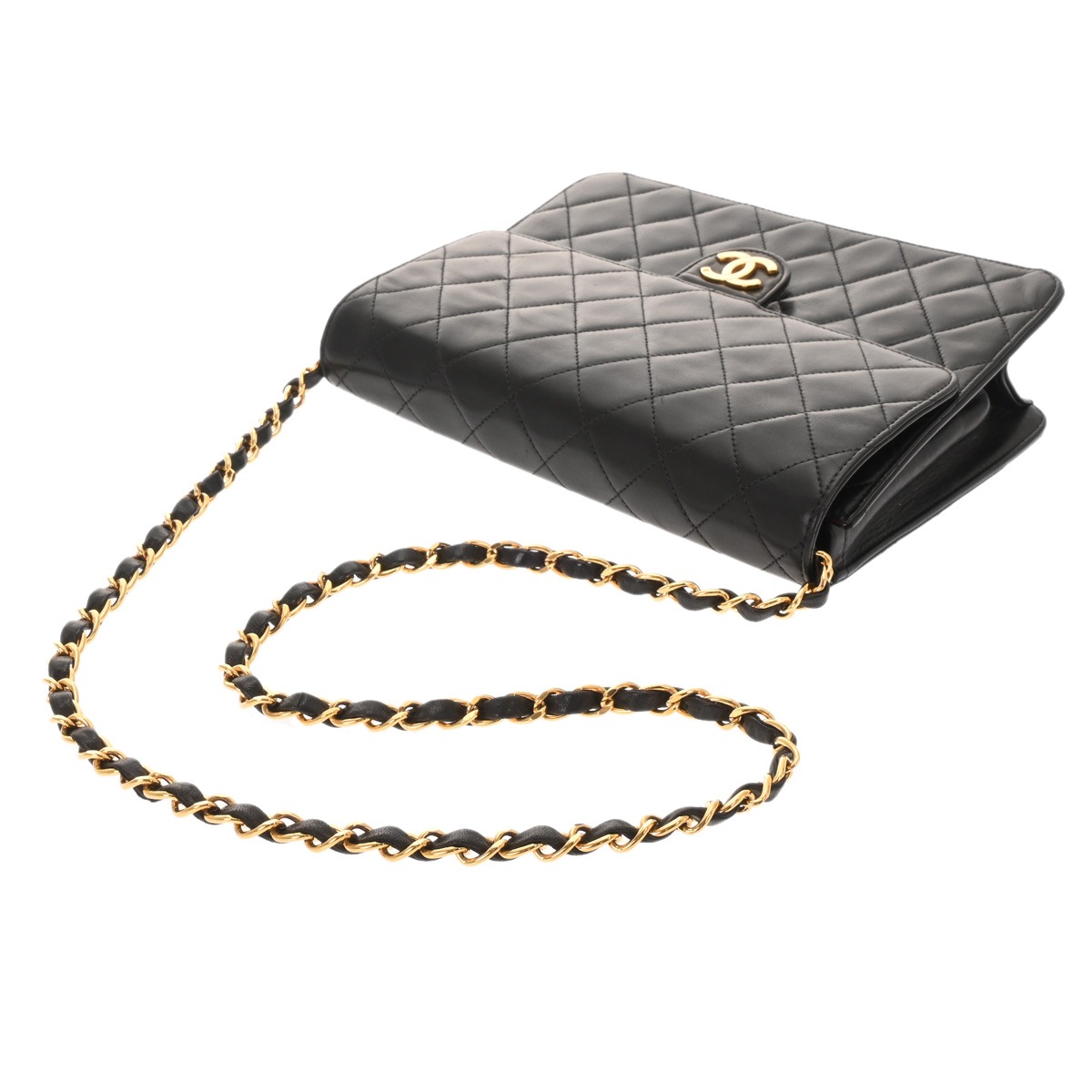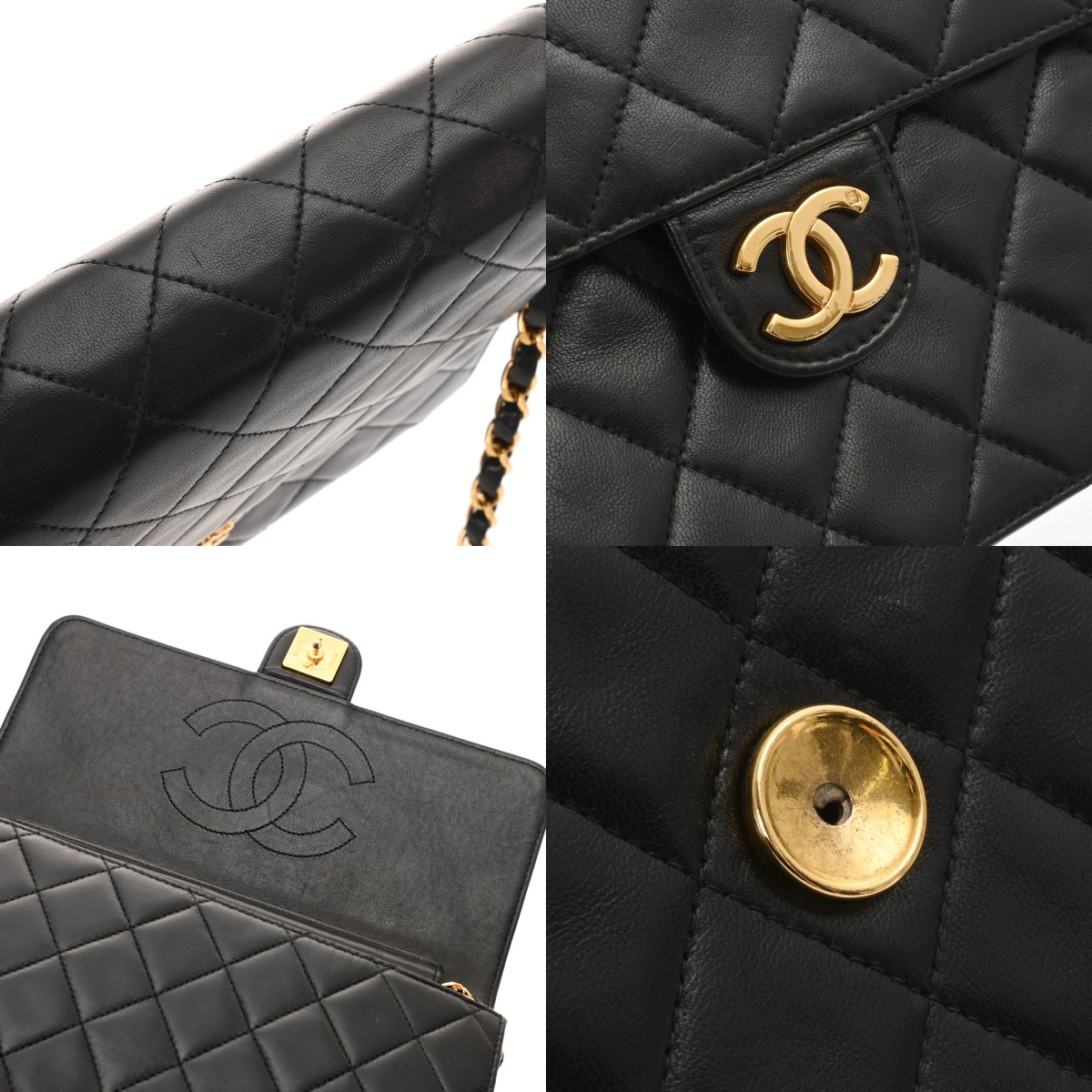シャネル マトラッセ プッシュロックチェーンショルダー ブラック ラムスキン レディース バッグ 【中古】【bag】