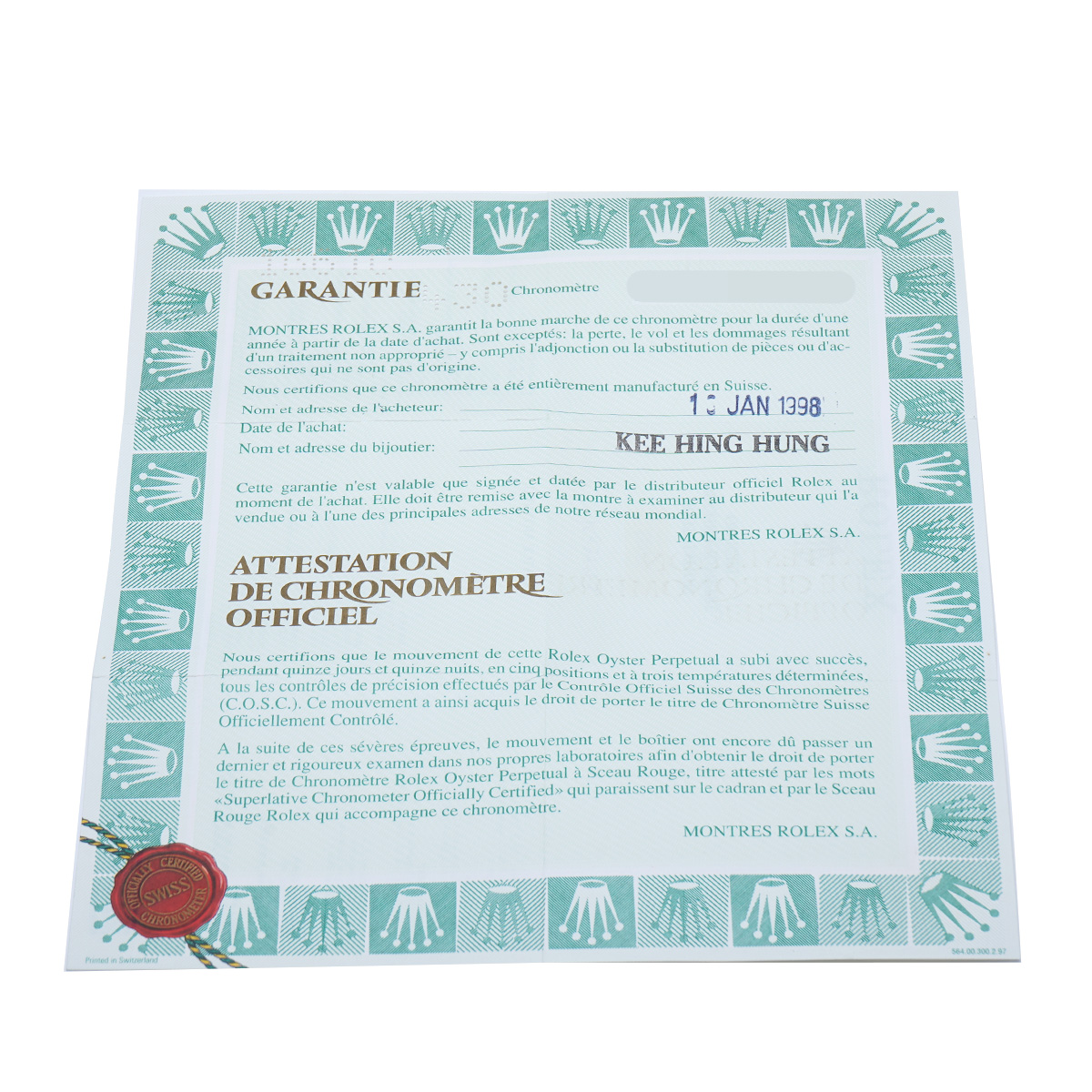 - メーカー保証書( 1998年1月海外購入) メーカー箱(ダメージ) 冊子