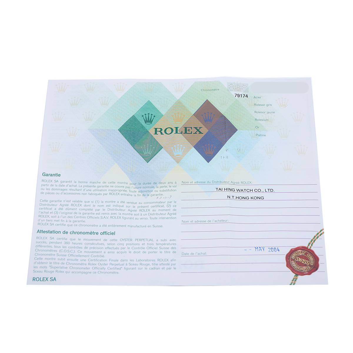 - メーカー保証書( 2004年5月海外購入) 内箱 無し