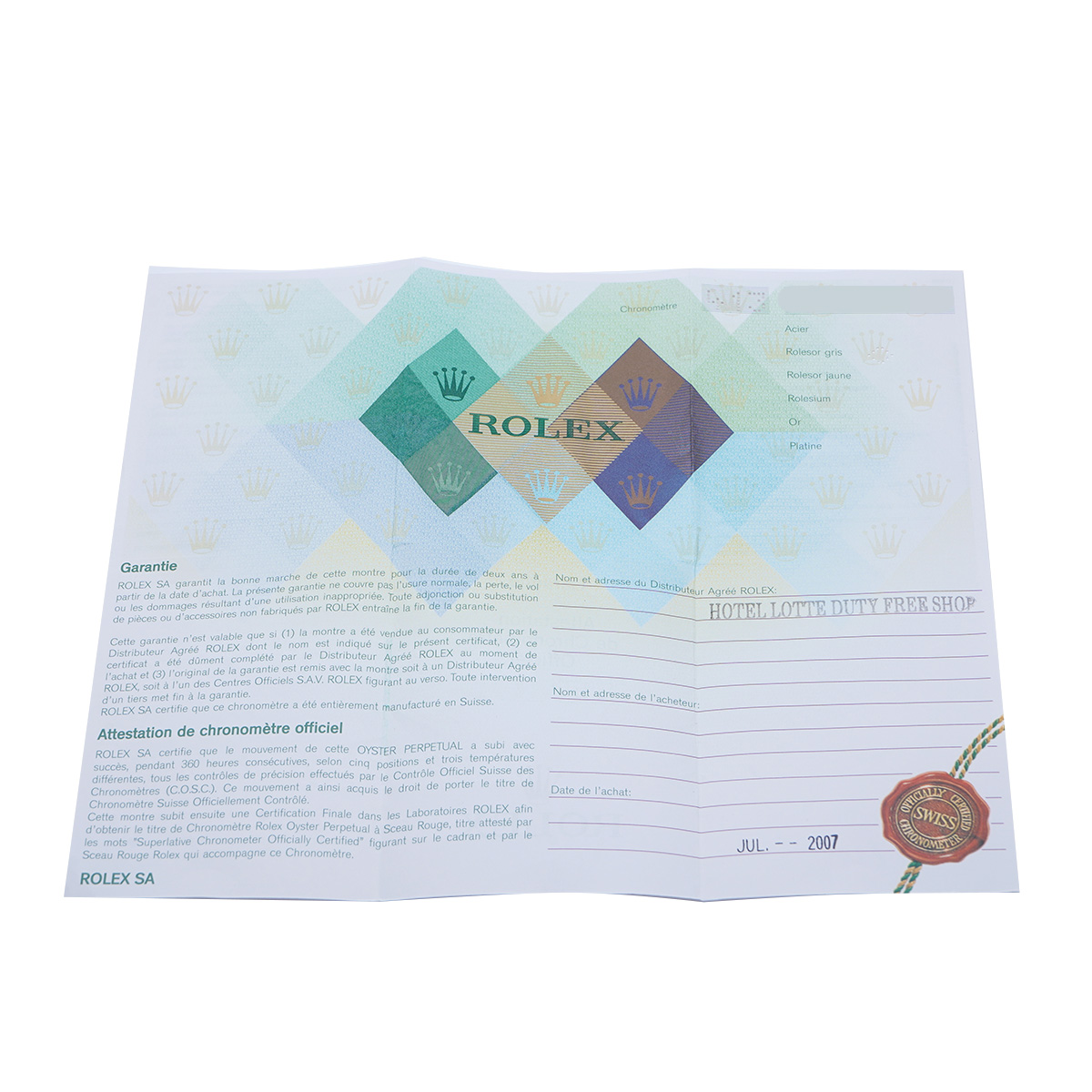 - メーカー保証書( 2007年7月海外購入) / メーカー箱/タグ