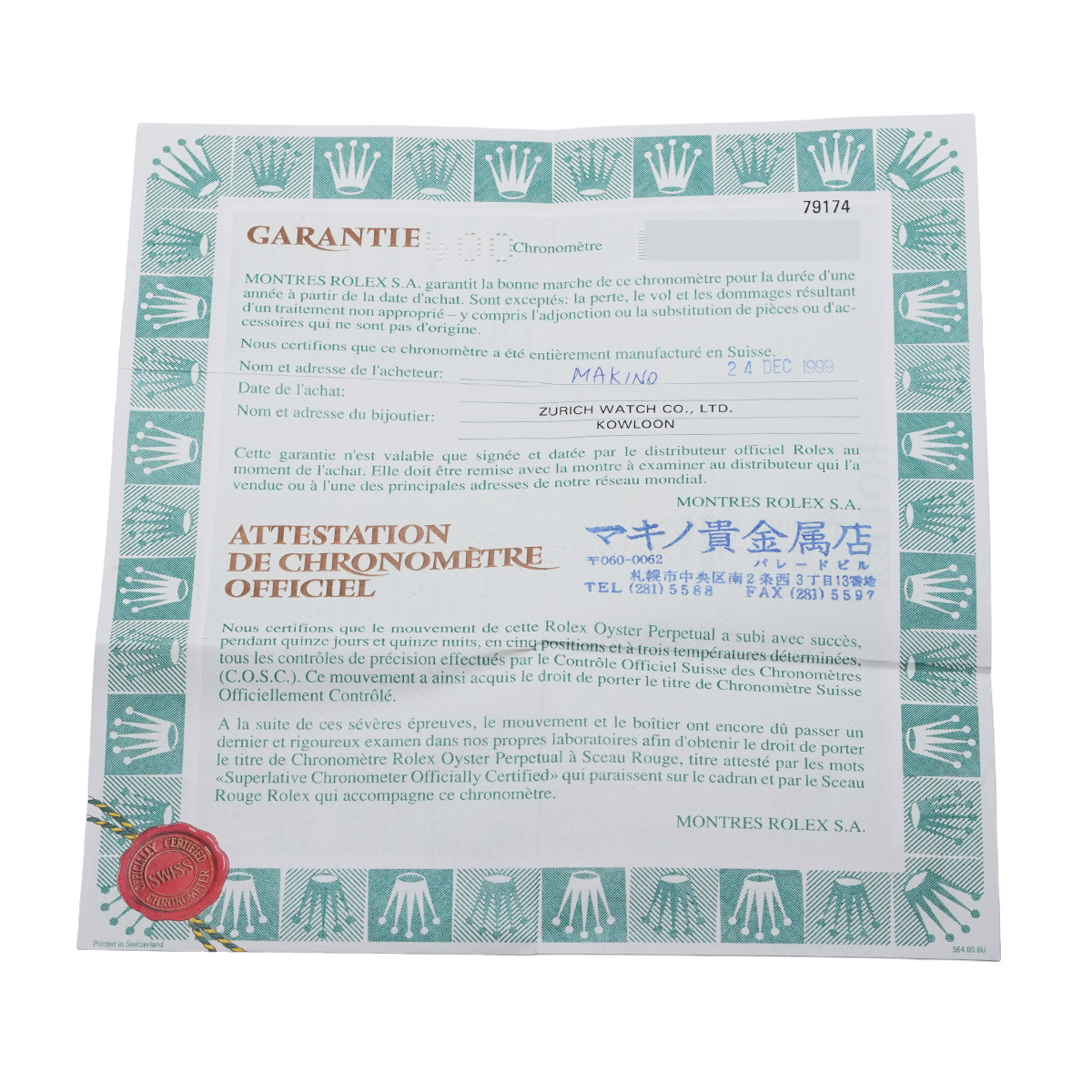 - 時計の当社保証