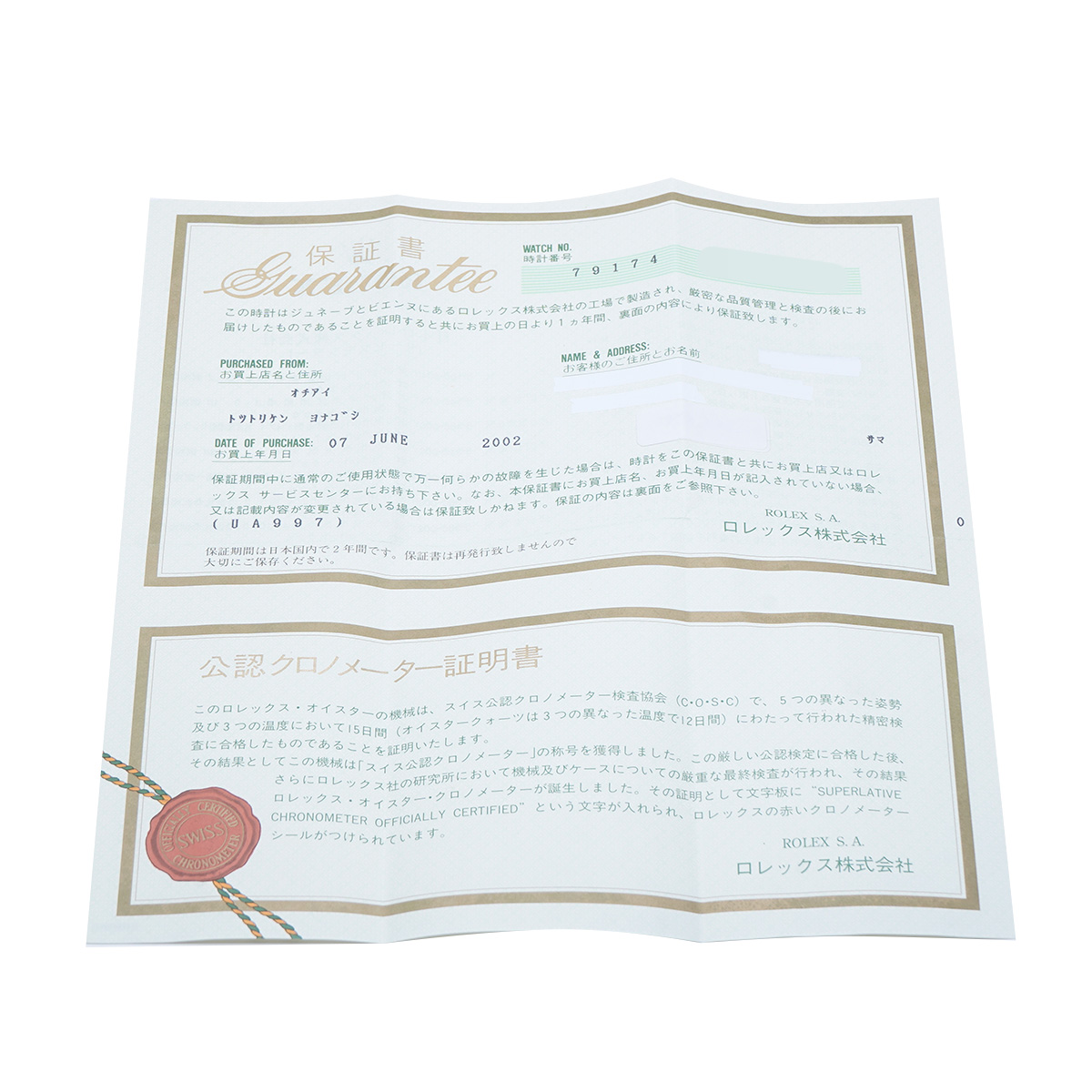- 時計の当社保証