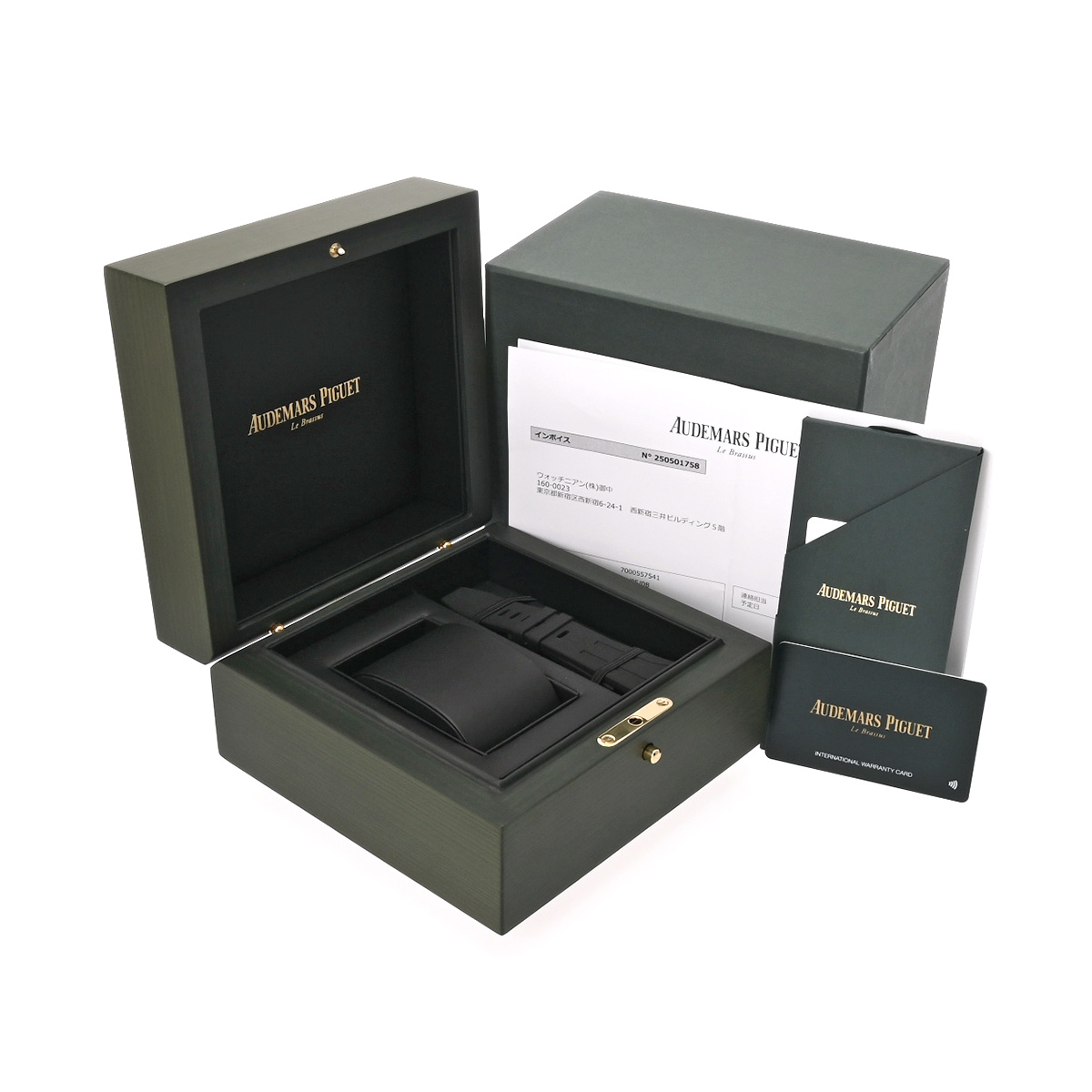 - メーカー保証書( 保証期限2027年11月) / 替えベルト( ラバー/ブラック) / メーカー箱/冊子 / 修理インボイス(2025年5月、2025年7月 コンプリートサービス)