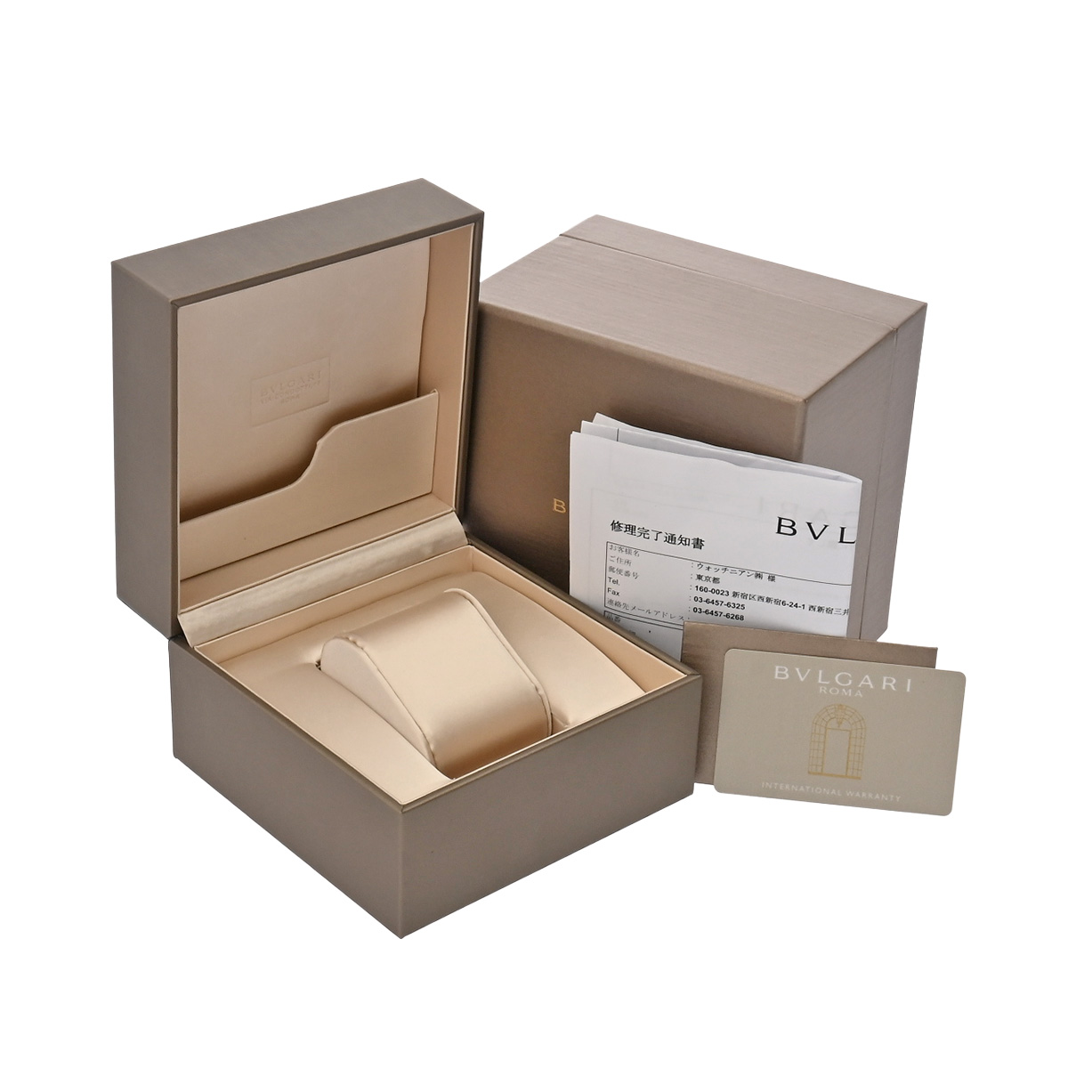 - メーカー保証書( 2024年12月購入) / メーカー箱 / 修理完了通知書(2025年4月ムーブメントチェック他)