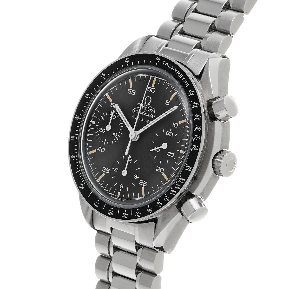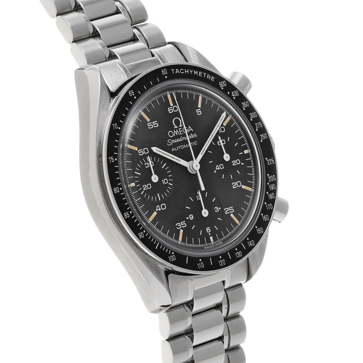 コメントこのスピードマスター リデュースドとも呼ばれるモデルは、オメガの代表的な時計であるスピードマスター プロフェッショナルのツールとして研ぎ澄まされた精悍さはそのままに、ケース径を39ミリに縮小して腕上での収まりを改善すると共に、自動巻きムーブメントの採用によって利便性を向上させることで、より多くの人々の日常に寄り添える時計を目指したものです。
