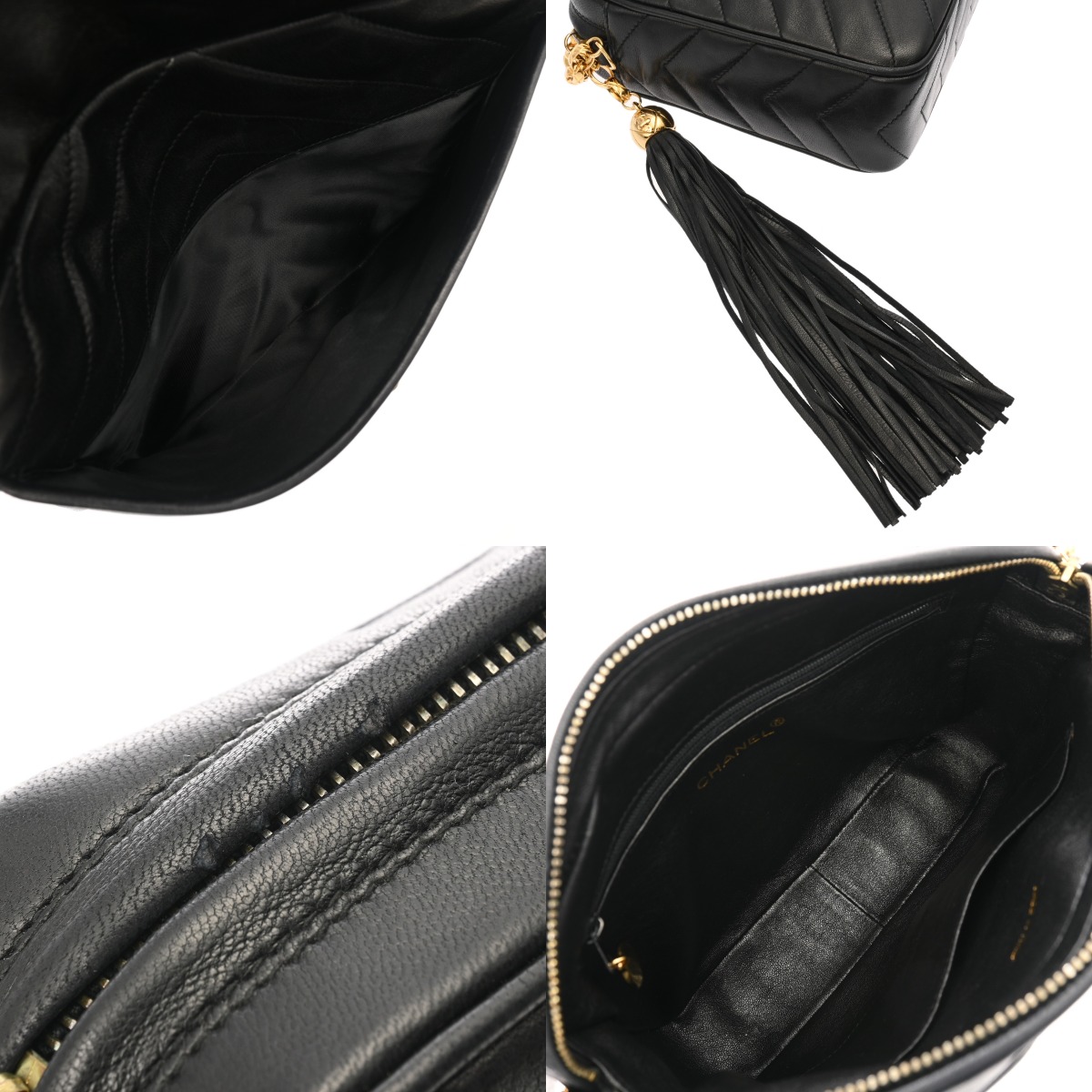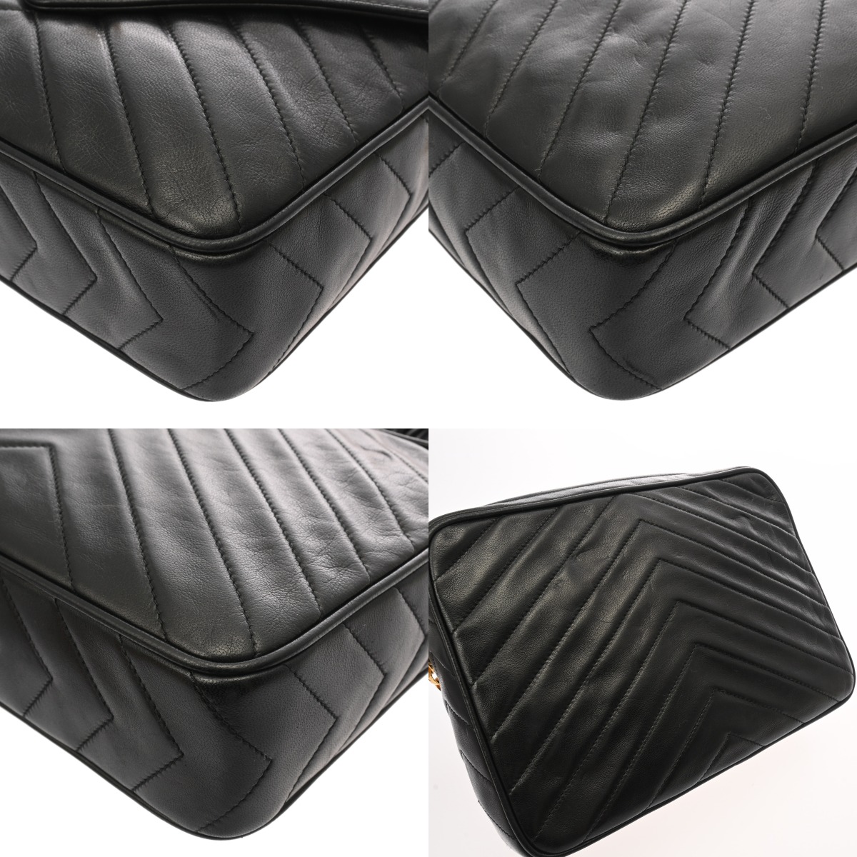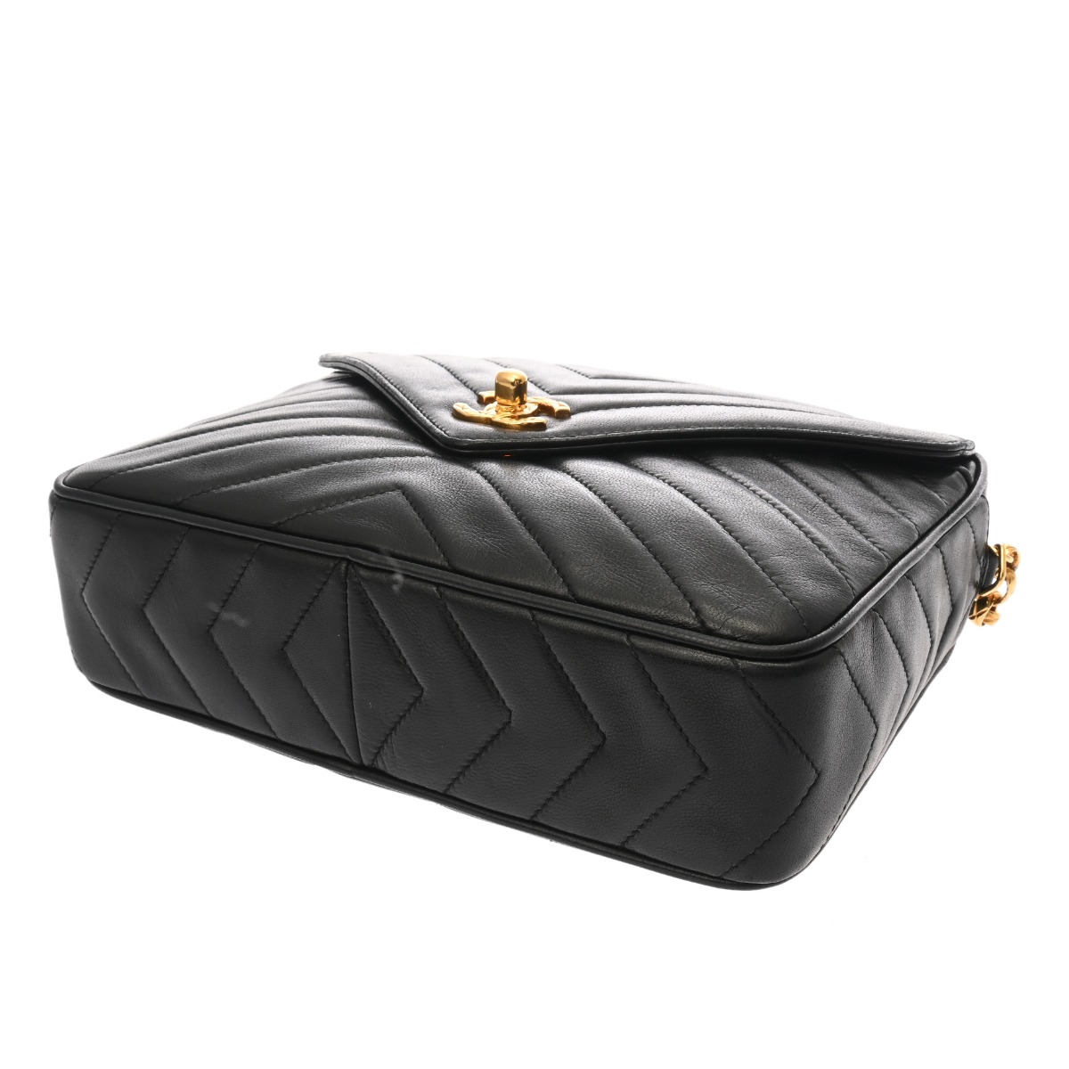 シャネル フリンジチェーンショルダー シェブロン ブラック ラムスキン レディース バッグ 【中古】【bag】