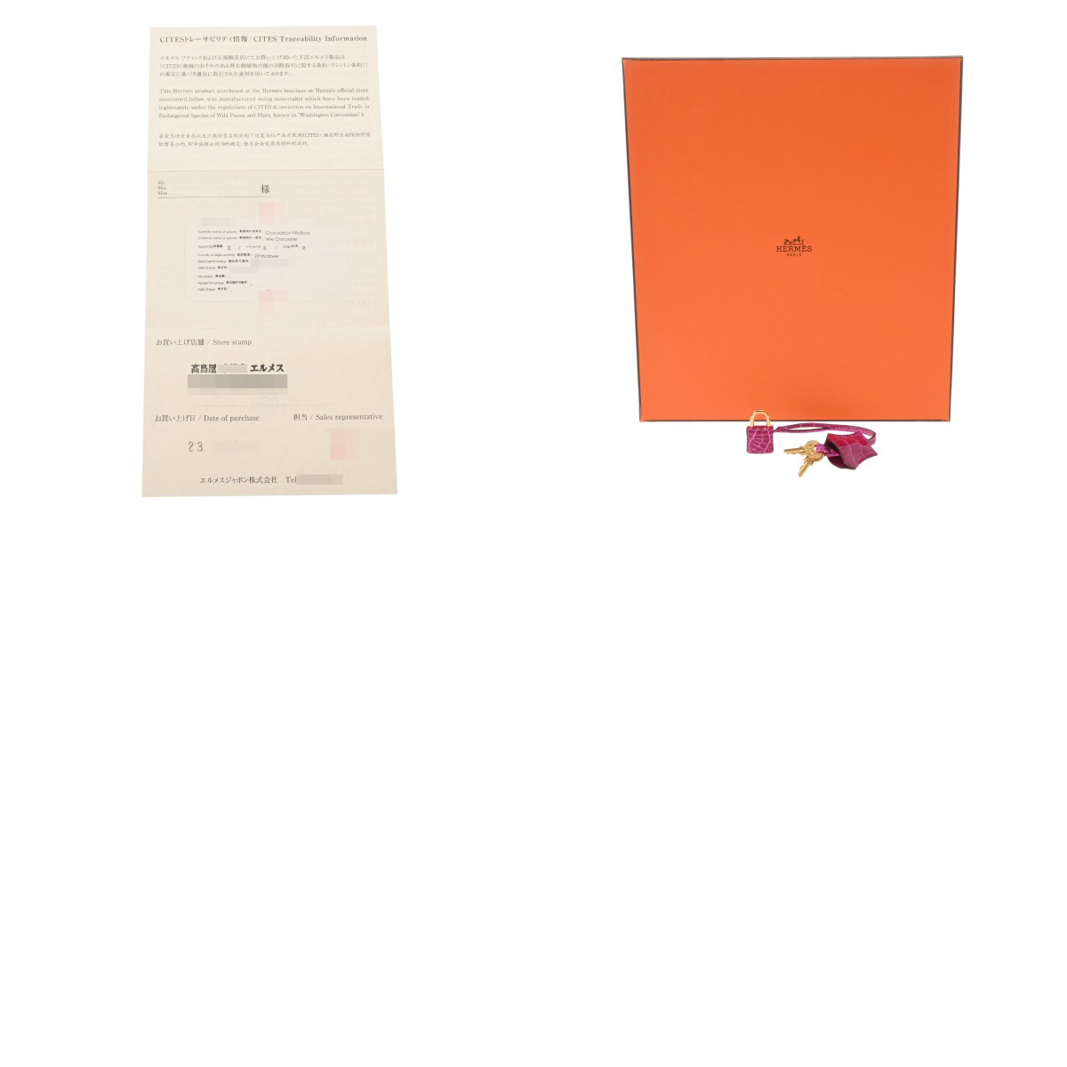 - 保存袋/カデナ/クロシェット(鍵付き)/弊社販売証明書 / CITES メーカー箱 (若干キズ有)