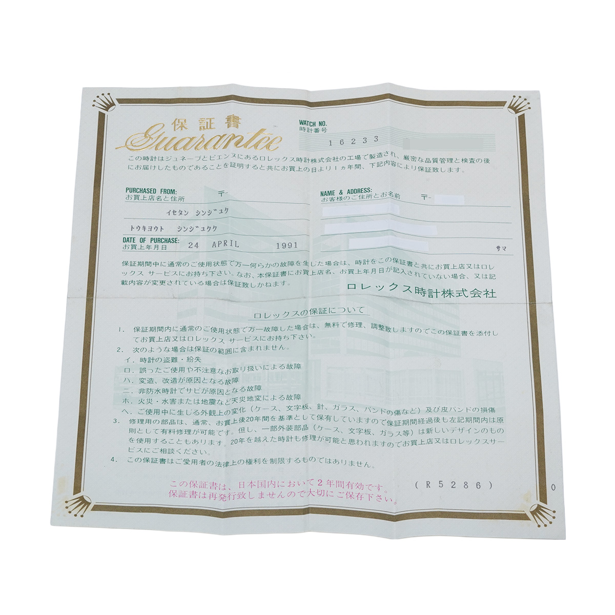 - メーカー保証書( 1991年4月国内購入)
