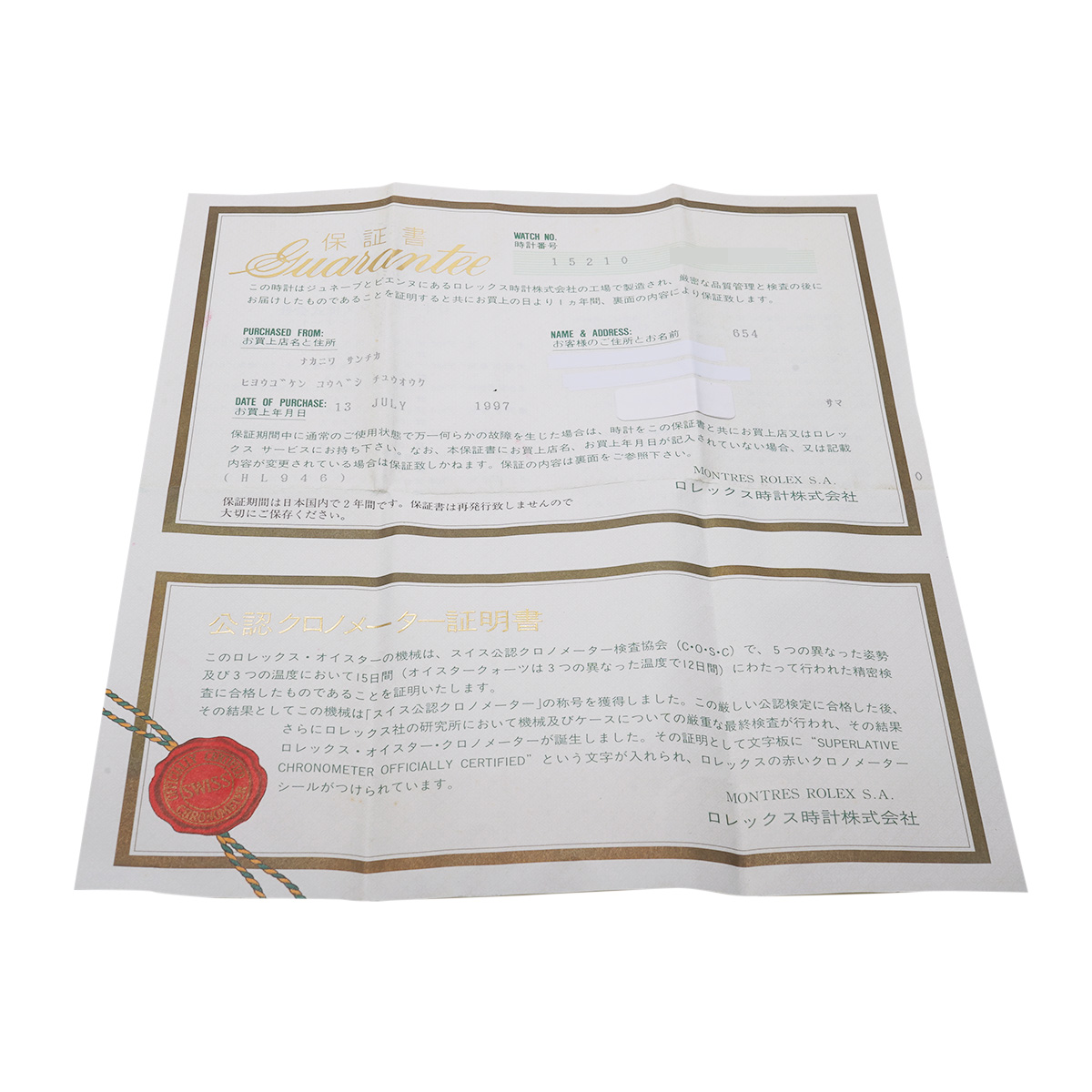 - メーカー保証書( 1997年7月国内購入) メーカー箱(ダメージ)