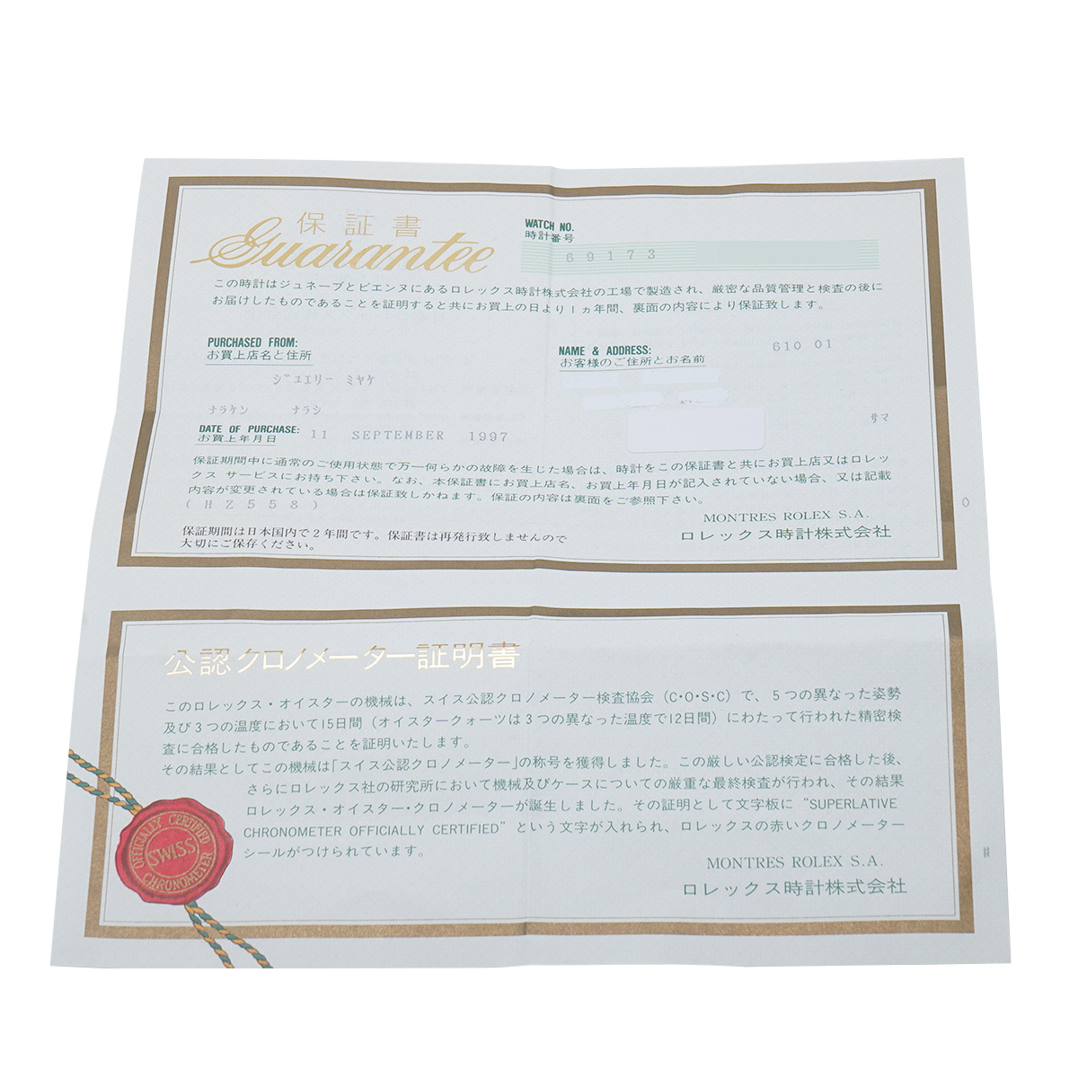 - メーカー保証書( 1997年9月国内購入)