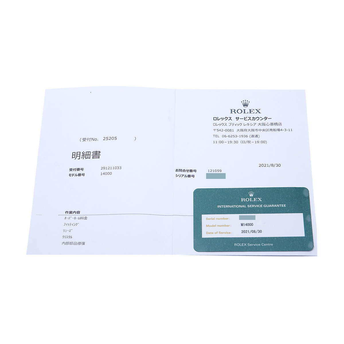 - 明細書/国際サービス保証書(2021年8月オーバーホール他)