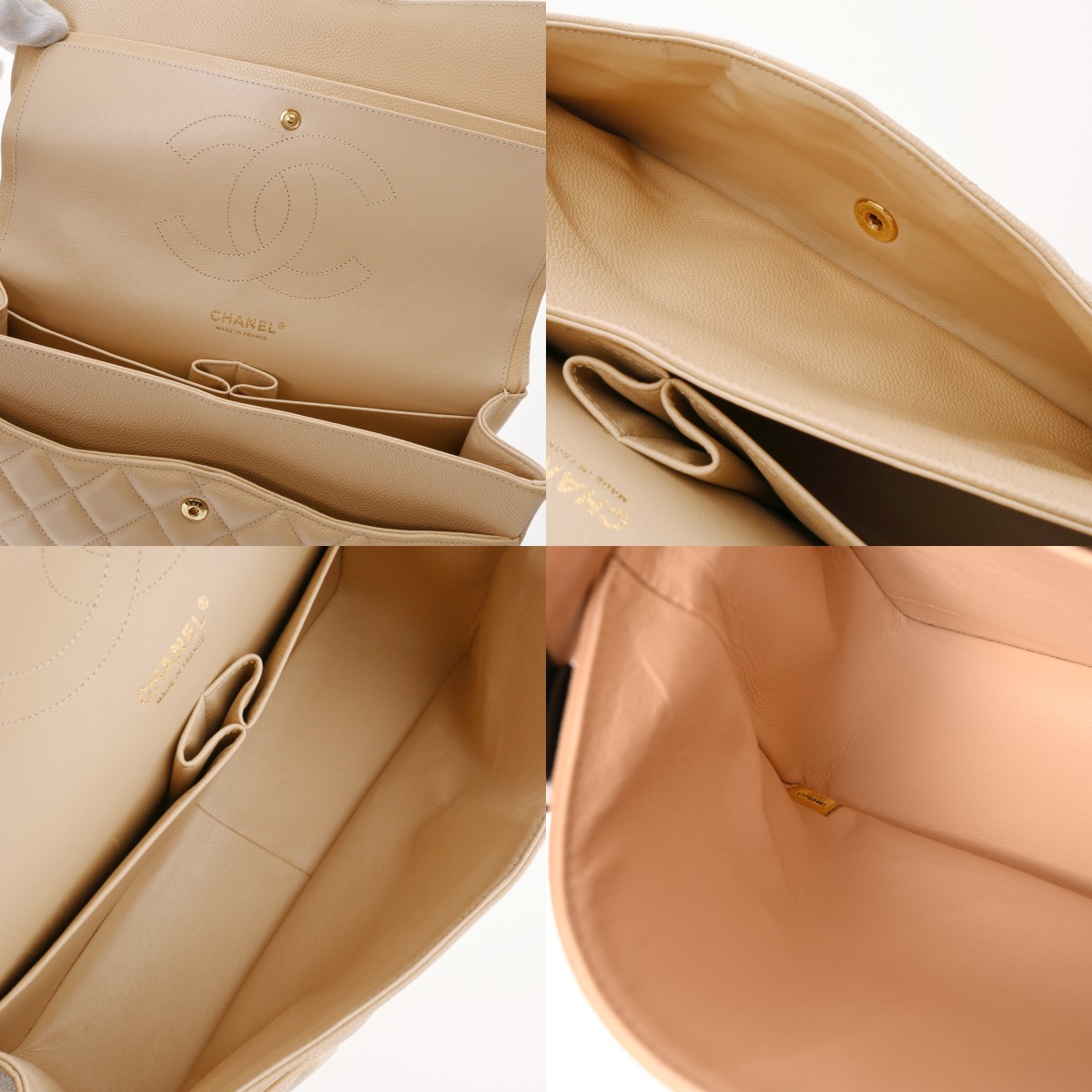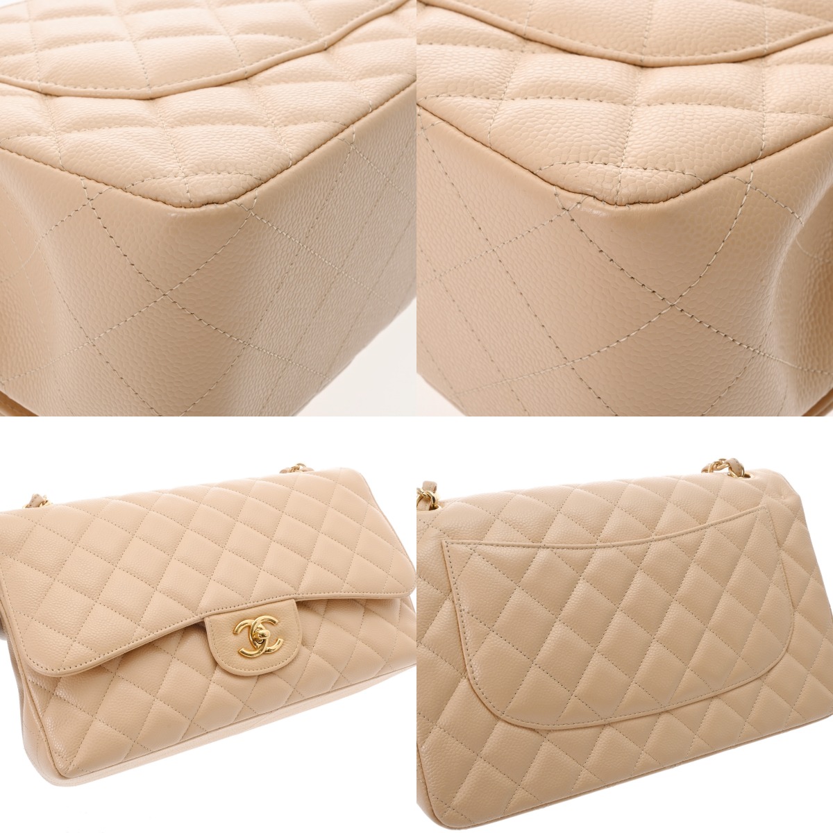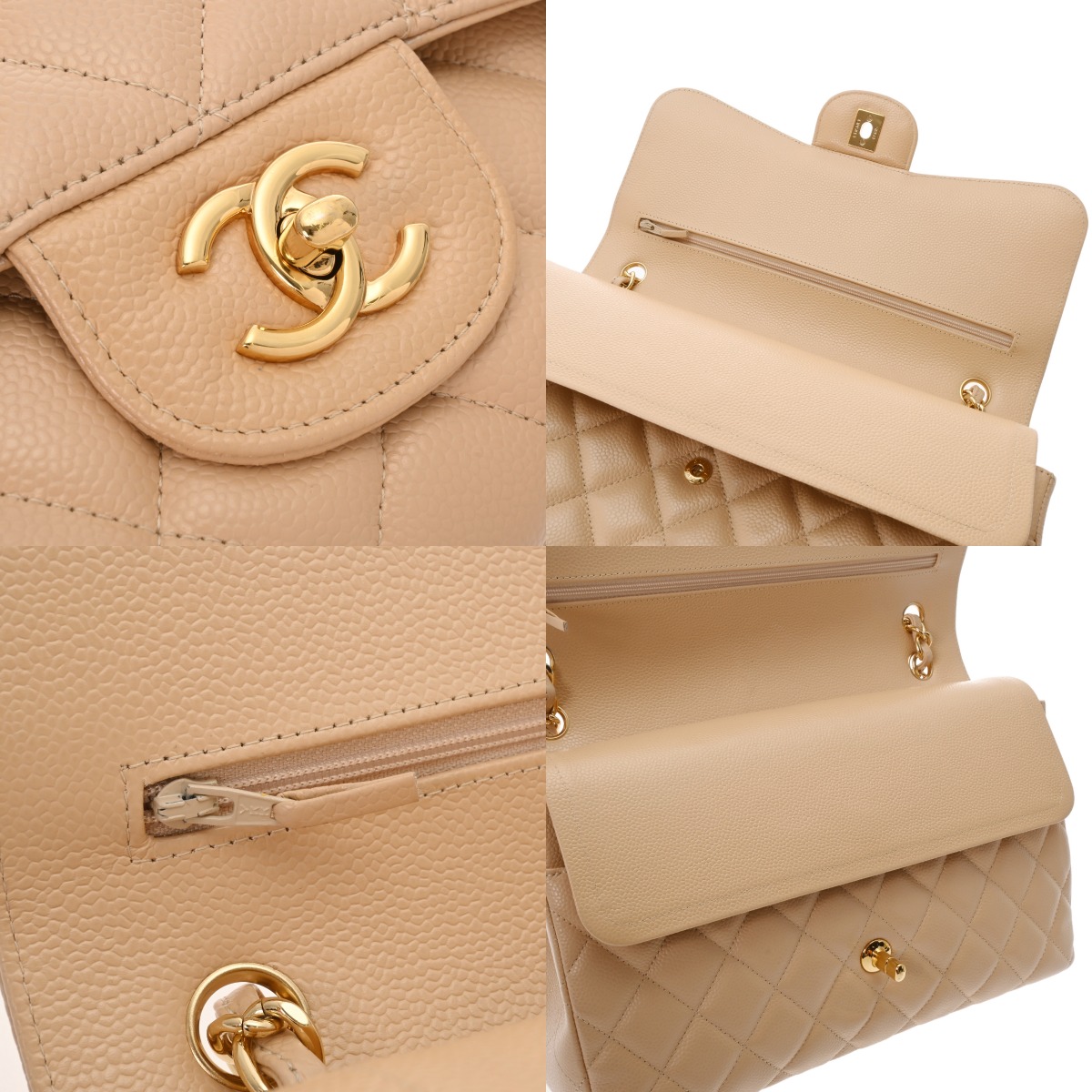 シャネル マトラッセ Wフラップ Wチェーンショルダー 30 ベージュ A58600 キャビアスキン レディース バッグ 【中古】【bag】