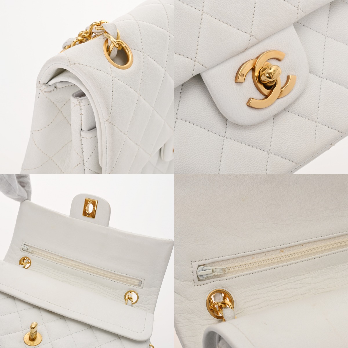 シャネル マトラッセ WフラップWチェーンショルダー 23 ホワイト A01113 ラムスキン レディース バッグ 【中古】【bag】