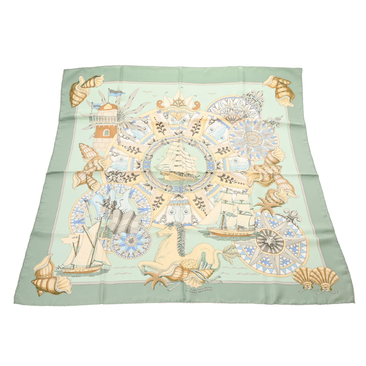 エルメス カレ 90 L AIR MARTIN グリーン シルク100% レディース 【中古】【other】