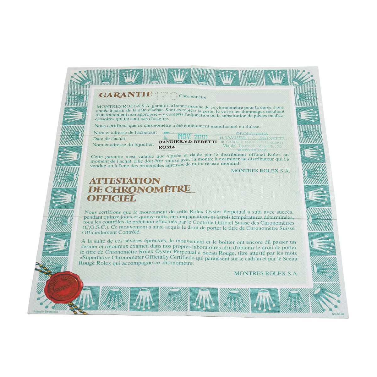 - メーカー保証書( 2001年11月海外購入) タグ